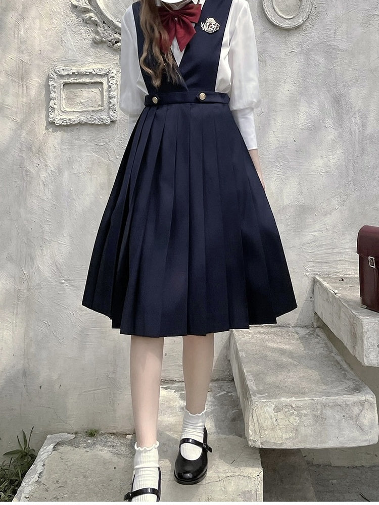 Dunkelblauer High Waist Pleat Rock Overalls 65 / 70cm Länge