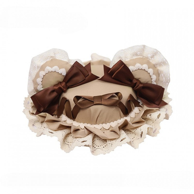 Süße Lolita-Minimütze mit Bärenohren, Spitzenbesatz und Schleifenakzenten – 3 Farboptionen