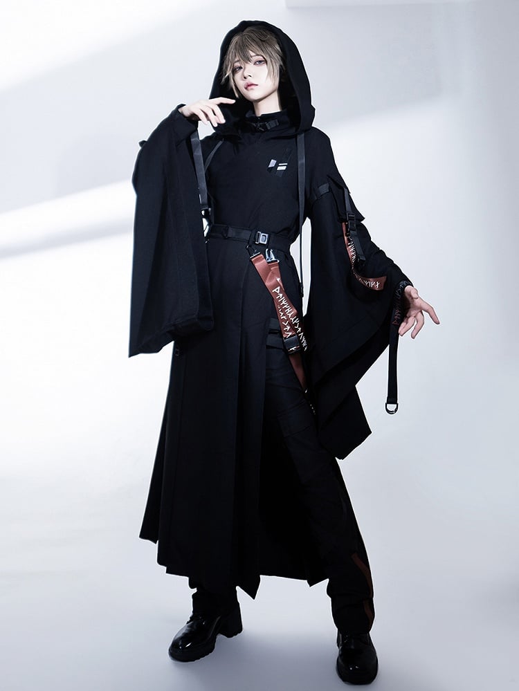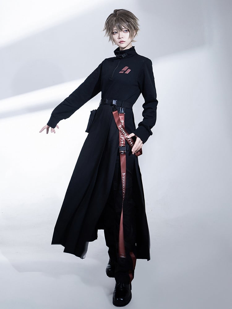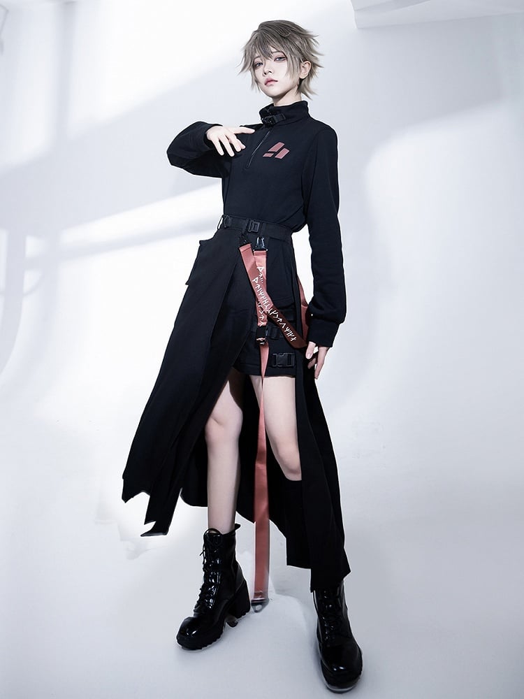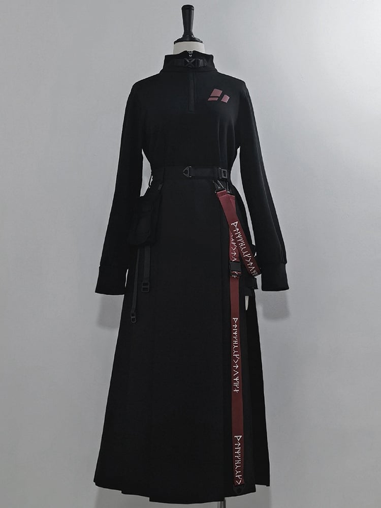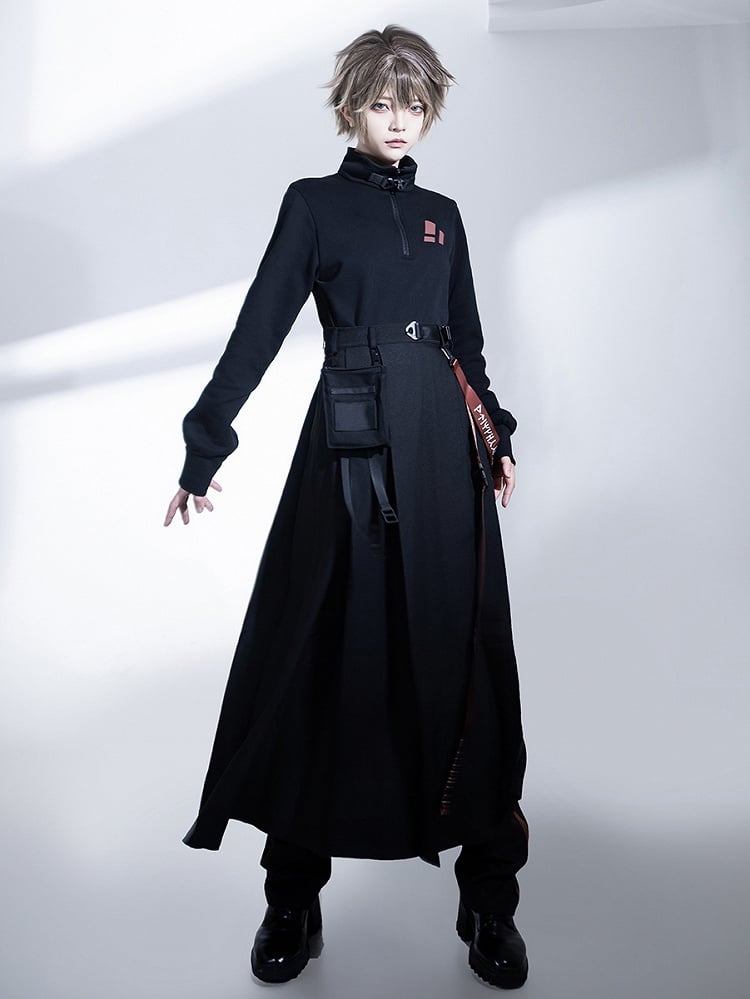 Schwarzer Cargorock mit hohem Schlitz, Trägern und Gürteltasche