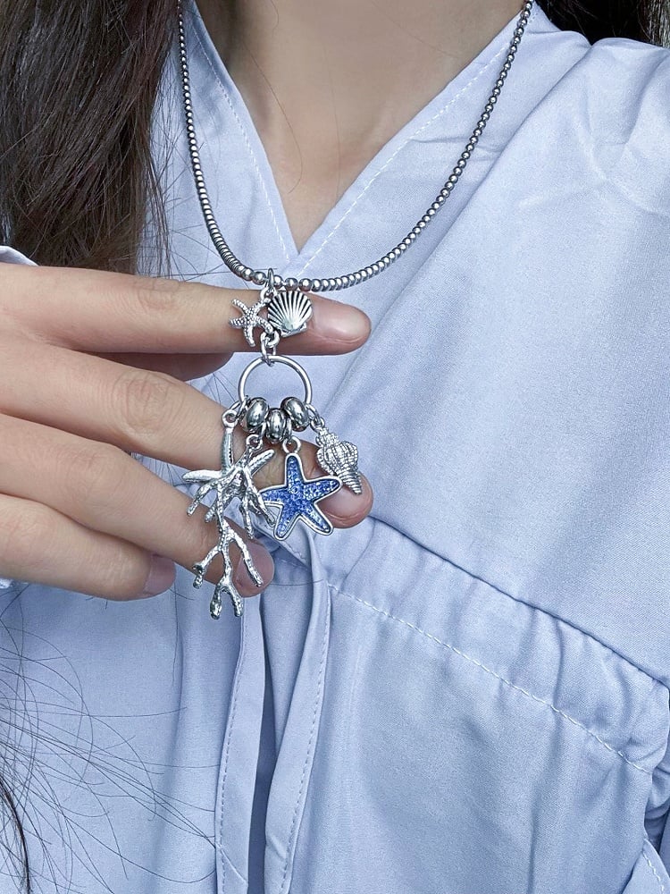 Blaue Y2K Bittersüße Seestern Koralle und Muschel Anhänger Halskette