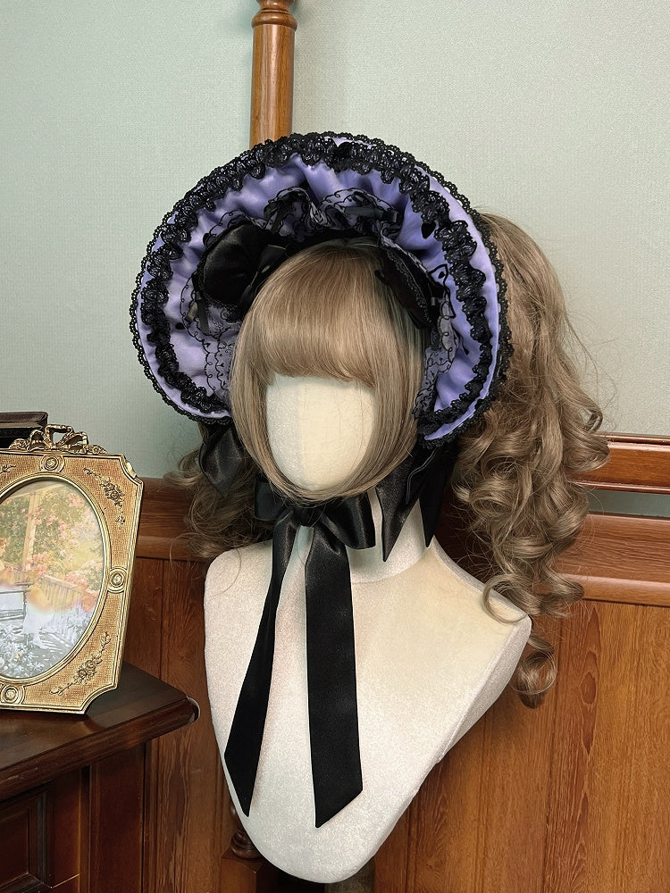 Rosa/lila süße Lolita-Haube mit Bärenohren und Stickerei