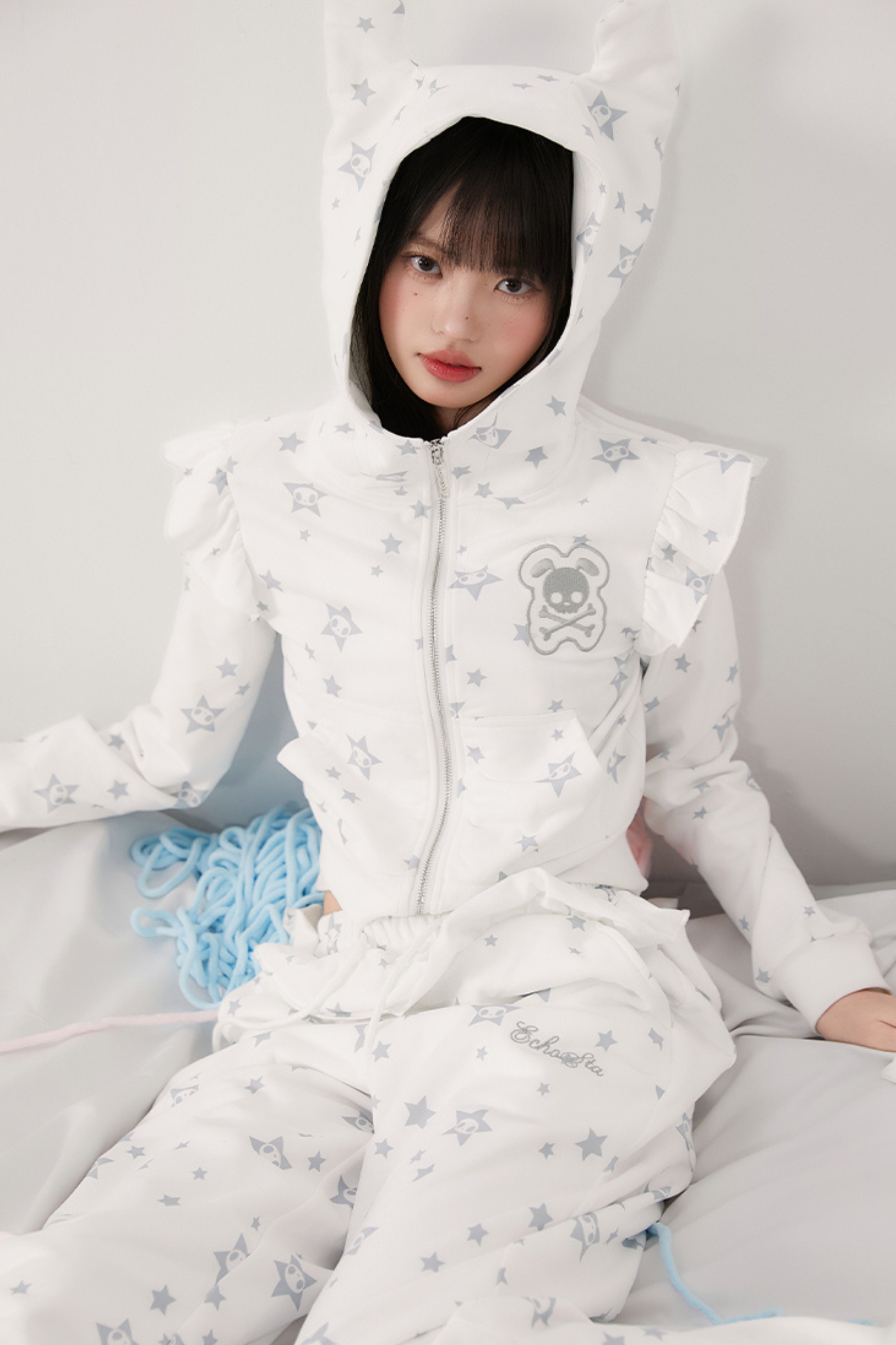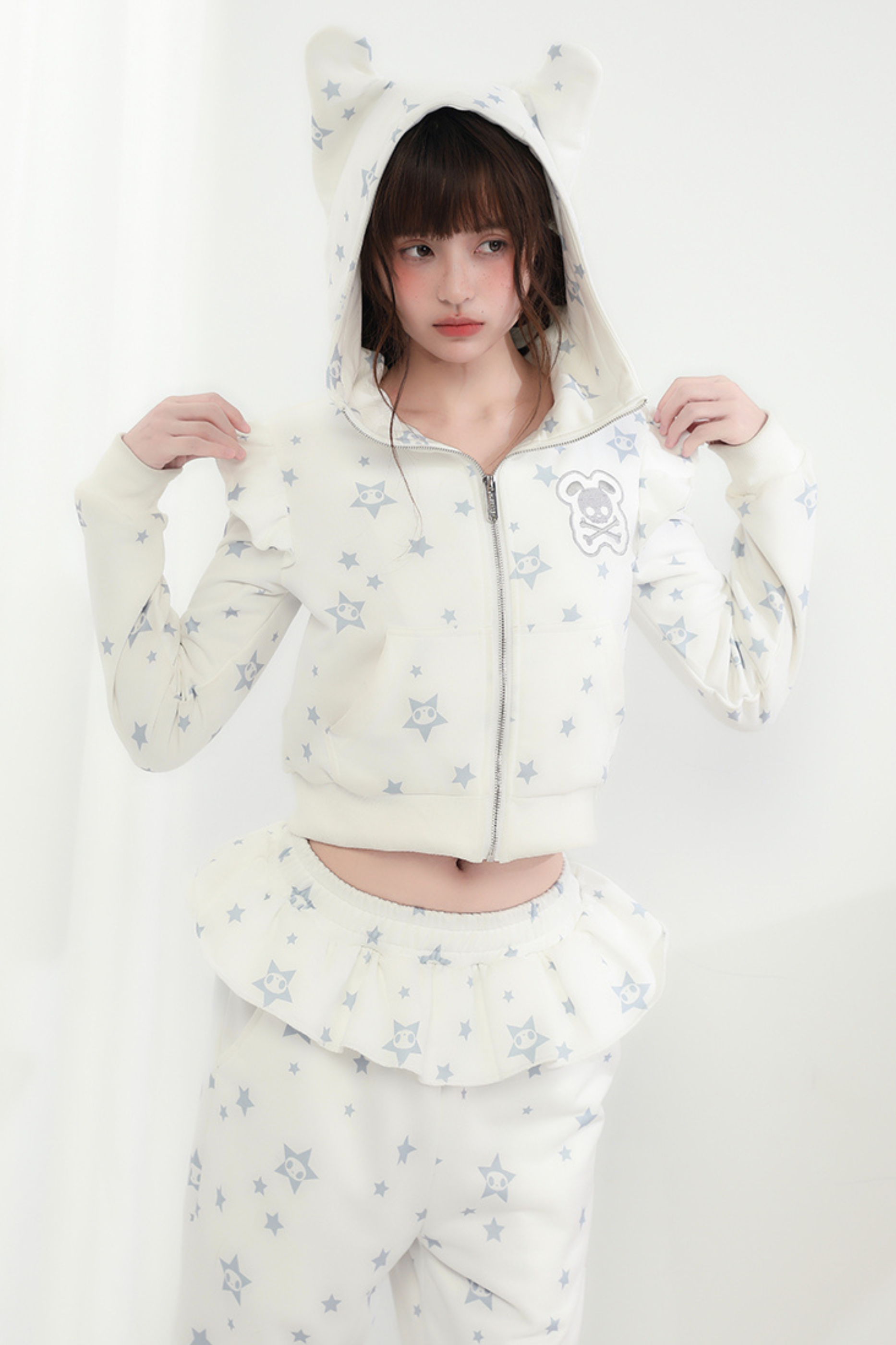❤Kapuzenpullover mit Tierohren + lockere Hose mit Rüschen❤