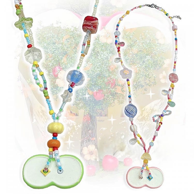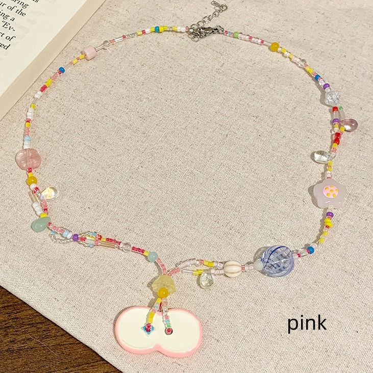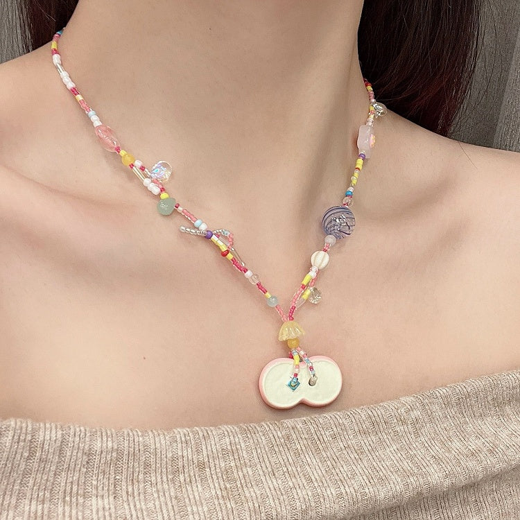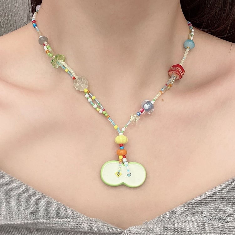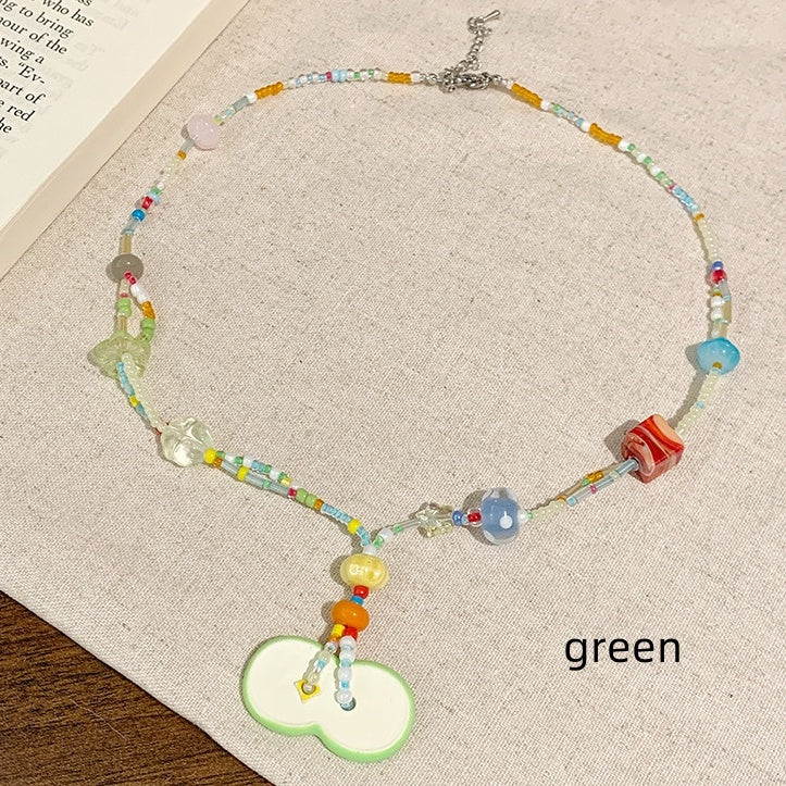 Rosa/Grüne Y2K Apfelperlen Halskette