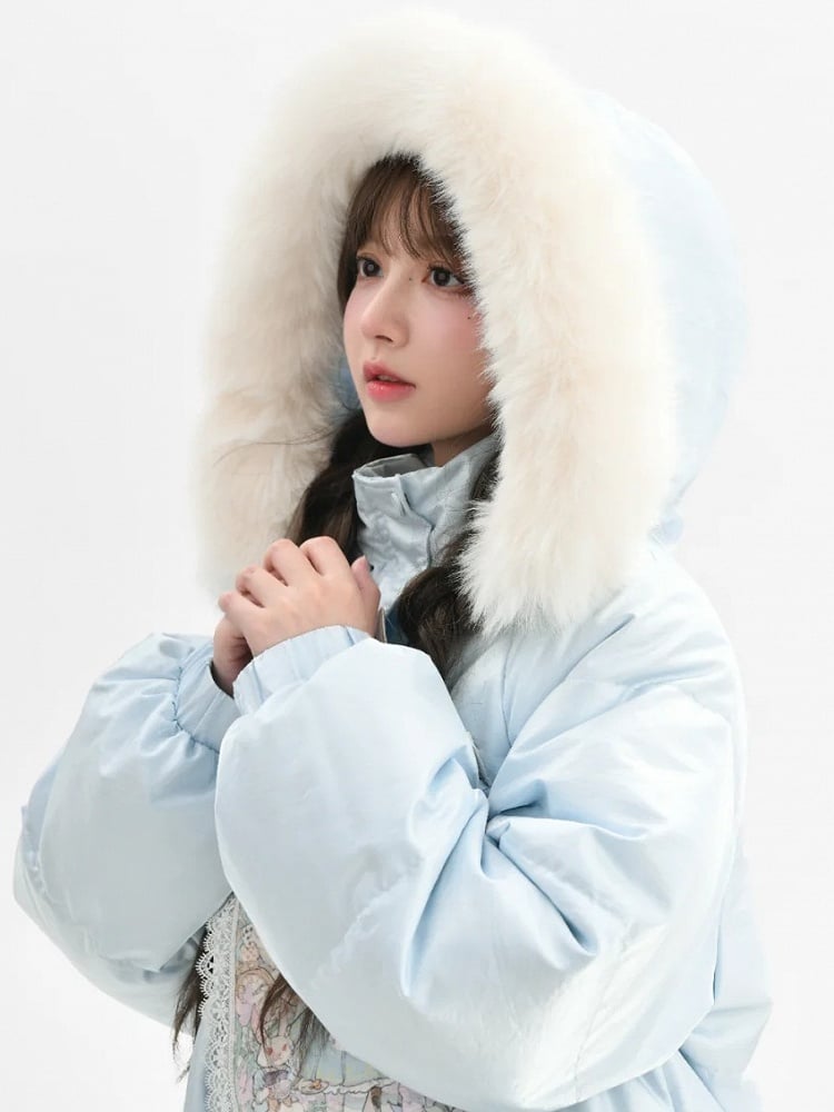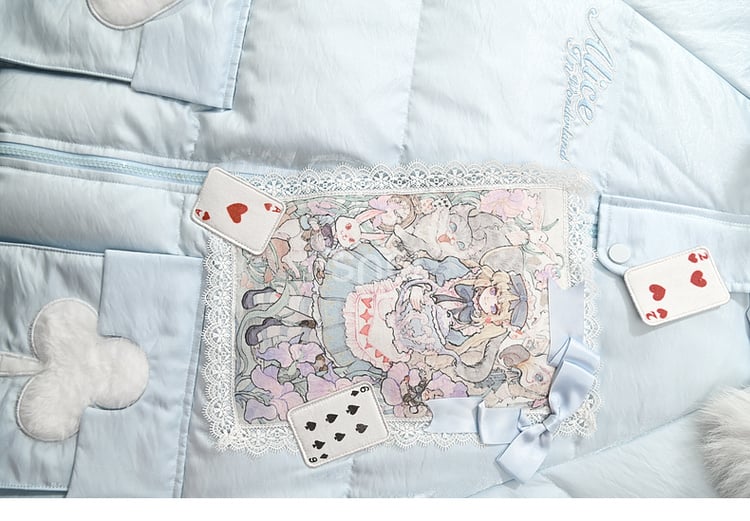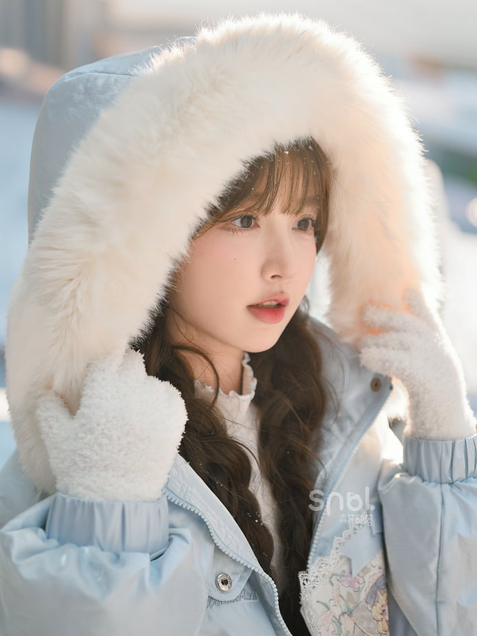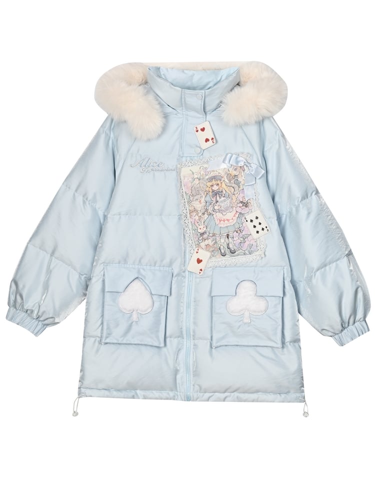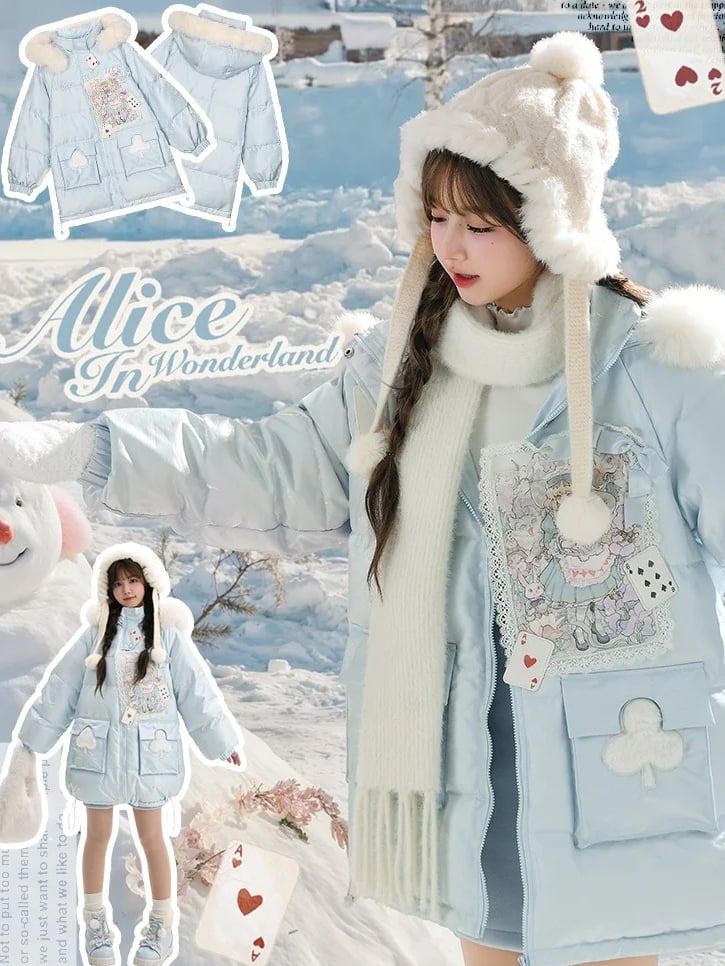 Bleiben Sie gemütlich und süß mit unserem blauen Daunenmantel mit Kapuze und Applikation. Mit seinem einzigartigen Applikationsdesign und der warmen Kapuzensilhouette sorgt dieser Mantel den ganzen Winter über für Stil und Komfort.