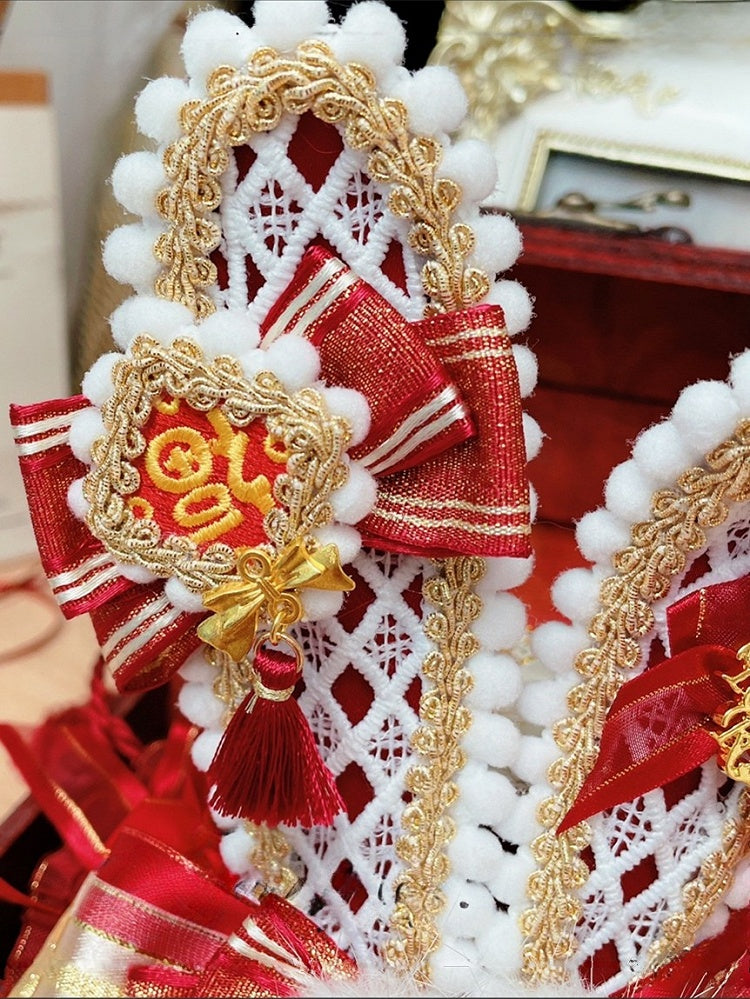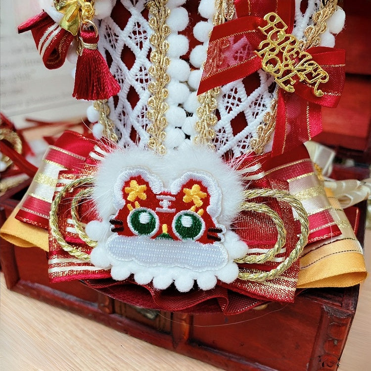 Roter Tiger-Applikations-Schleifenknoten-Details Qi Lolita-Hasenohren-Minihut