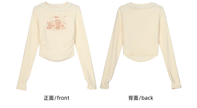 Apricot Bunny und Teddybär Langarm Top gerüscht