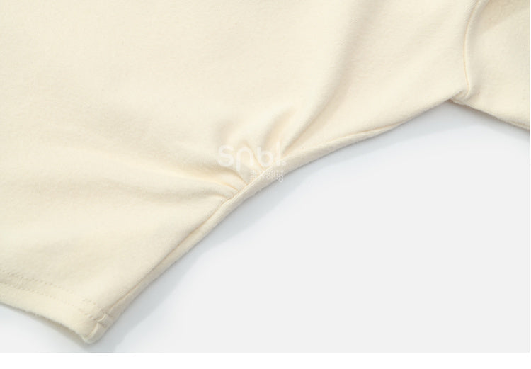 Dieses hübsche aprikosenfarbene Oberteil besticht durch niedliche Hasen- und Teddybär-Prints, bezaubernde lange Ärmel und ein gerüschtes Design. Perfekt für Ihr Kleines, damit es den ganzen Tag über stilvoll und bequem bleibt.