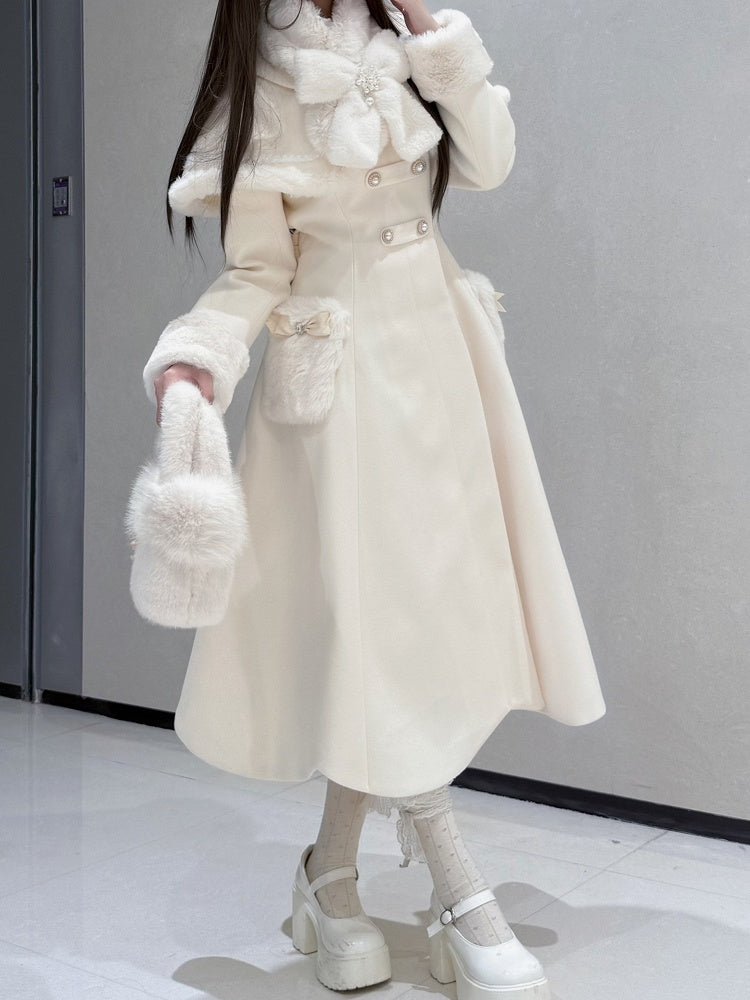 Aprikosenfarbener Lolita-Mantel mit gewelltem Rand und Plüschschal mit Schleife