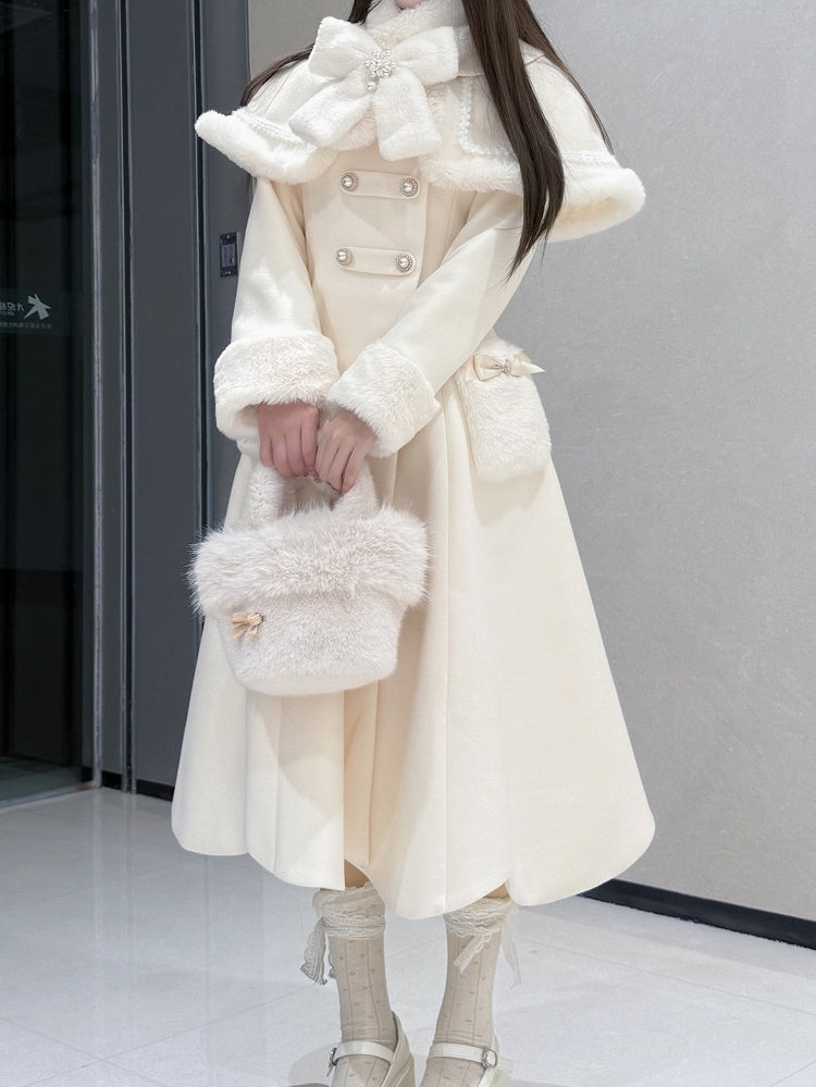Erleben Sie einen Hauch von Charme mit unserem Apricot Cape Lolita Coat mit gewelltem Randbesatz. Mit einem plüschigen Schal mit Schleife bleiben Sie in diesem schönen Mantel warm und stilvoll. Perfekt für jeden Anlass, verleihen Sie Ihrem Look einen Hauch von Niedlichkeit.