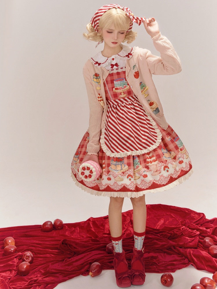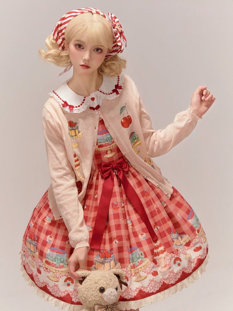Rosa und weißes Old School Lolita Fashion Kleid Bowknot Detais Lolita JSK Set