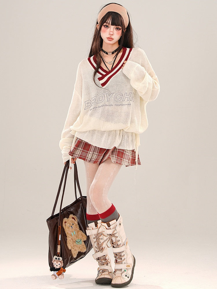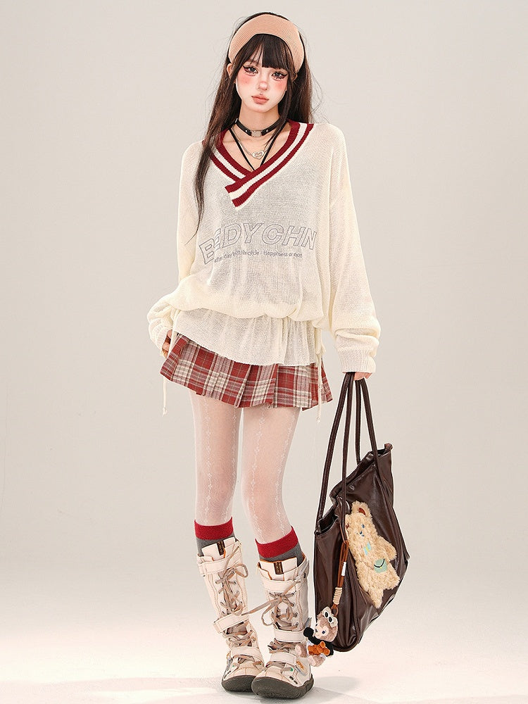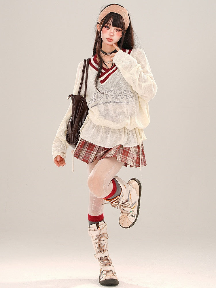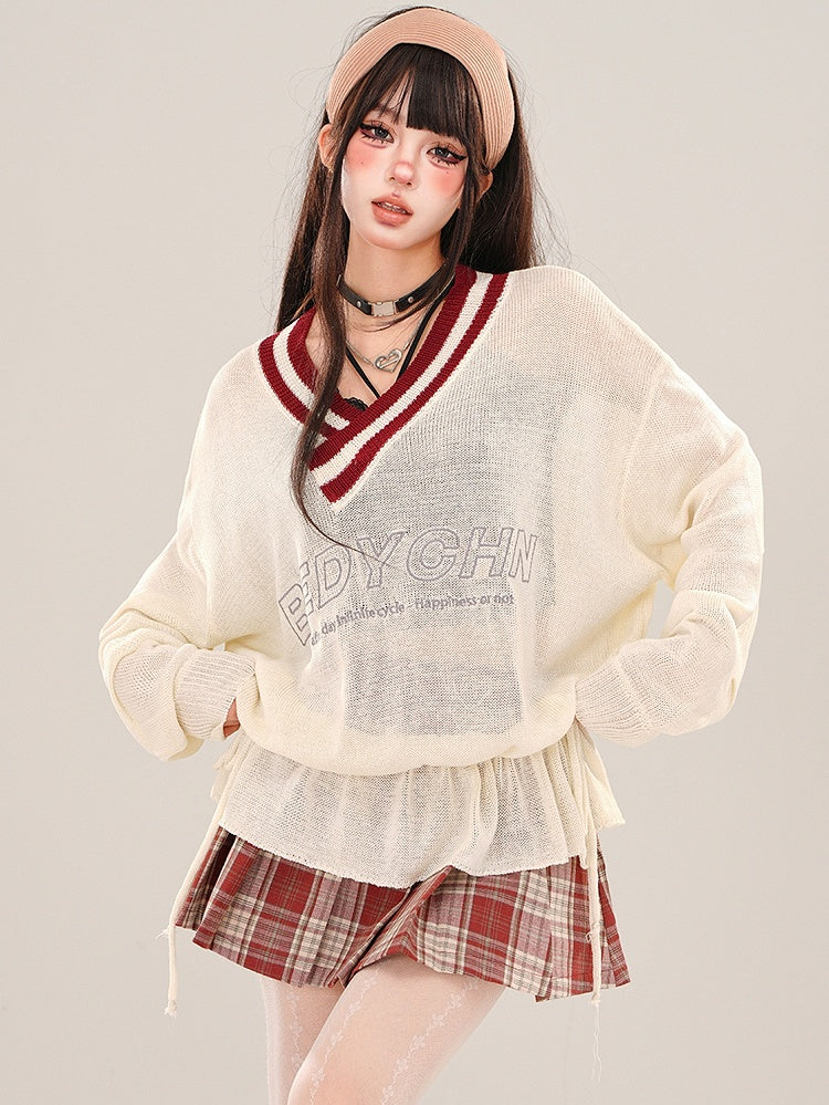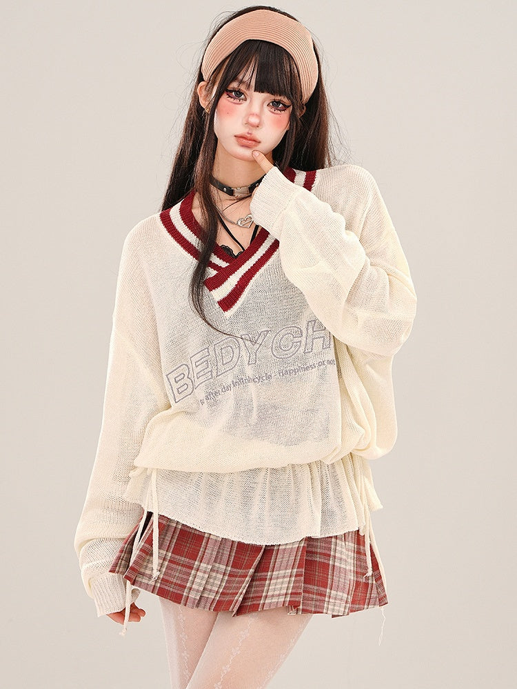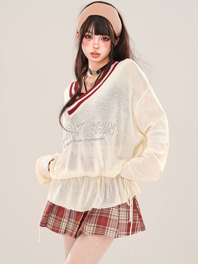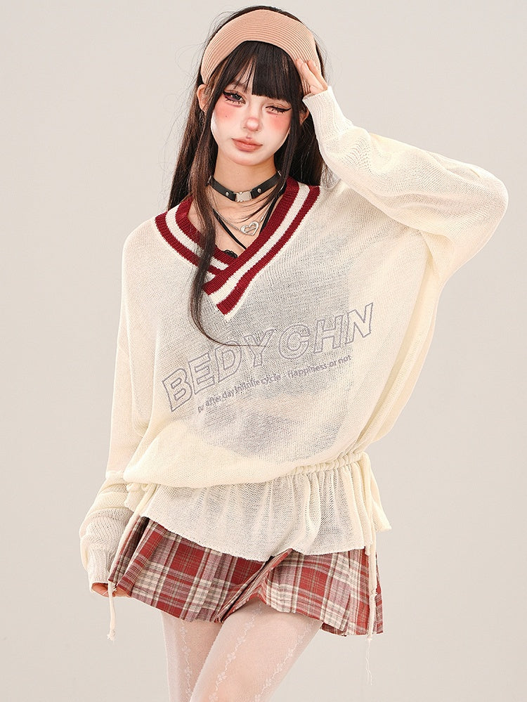 Dieses bezaubernde Oberteil besticht durch einen schmeichelhaften V-Ausschnitt, eine gerüschte Taille und halbtransparentes, lockeres Strickmaterial. Perfekt, um Ihrem Outfit einen Hauch von Niedlichkeit zu verleihen und gleichzeitig bequem und stilvoll zu bleiben.