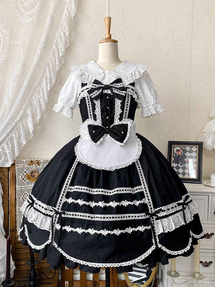 Schwarz-weißes Old School Lolita Fashion Kleid Bowknot Lolita JSK Set