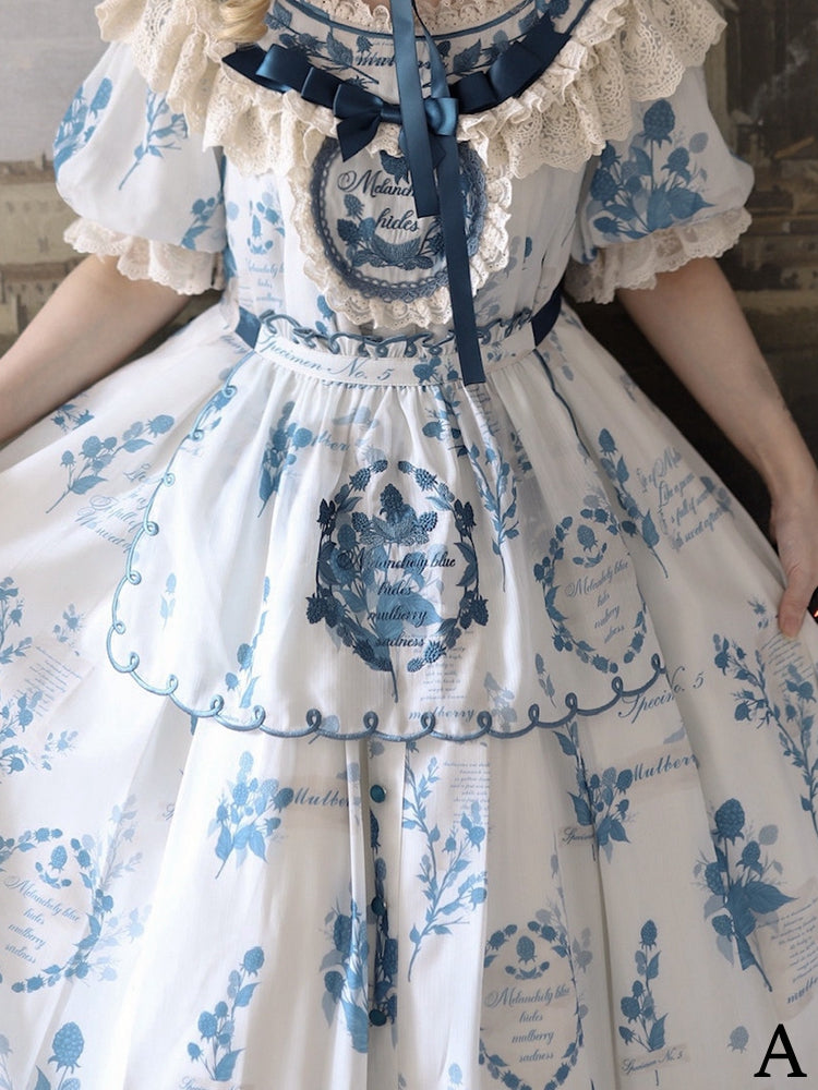 Blau-weißes Old School Lolita Fashion Kleid mit Schleife und Details, JSK-Set