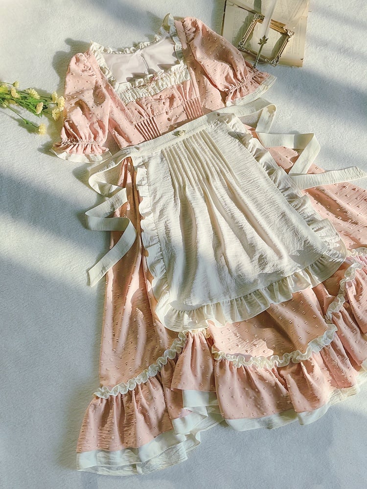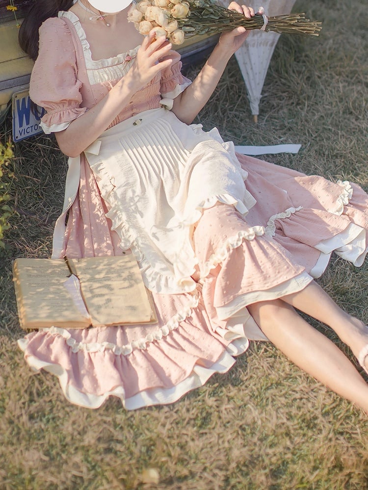 Rosa und weißes Old School Lolita Fashion Kleid Bowknot Detais Lolita JSK Set
