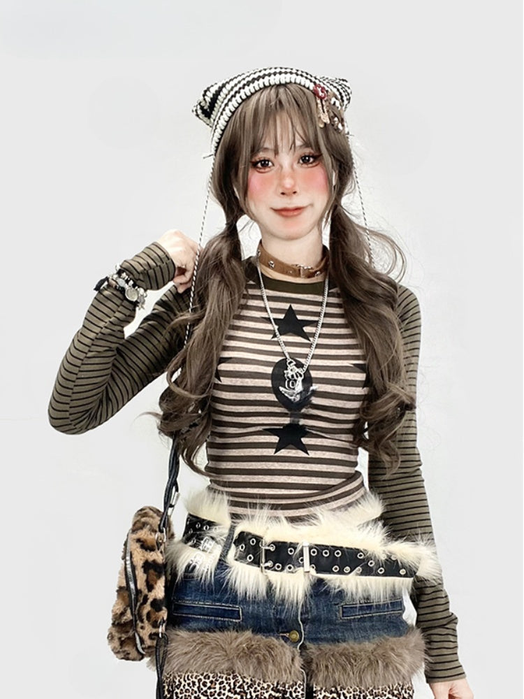 In unserem armeegrün gestreiften Top mit Sternenmuster siehst du süß aus. Die armeegrünen Streifen und der Sternendruck verleihen deinem Outfit einen Hauch von Verspieltheit. Perfekt für einen lässigen Tag mit Freunden oder einen entspannten Wochenend-Look.