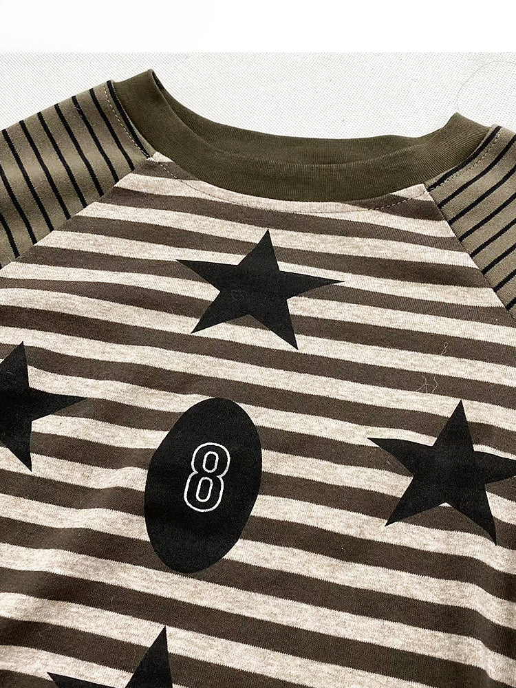 Armygrünes Oberteil mit Streifenmuster und Sternenprint