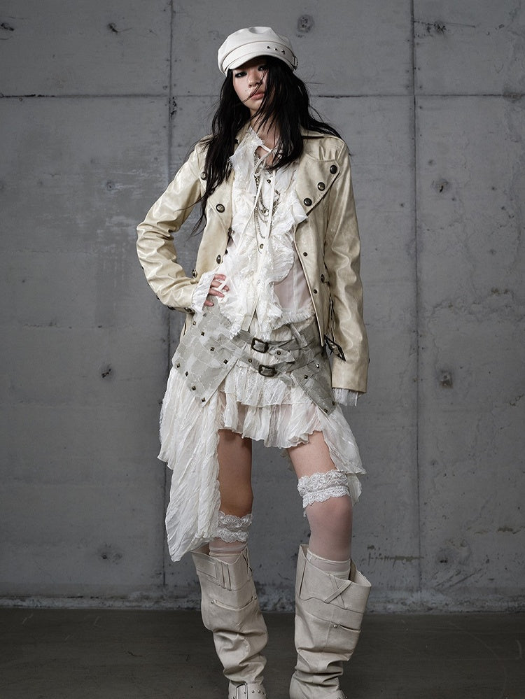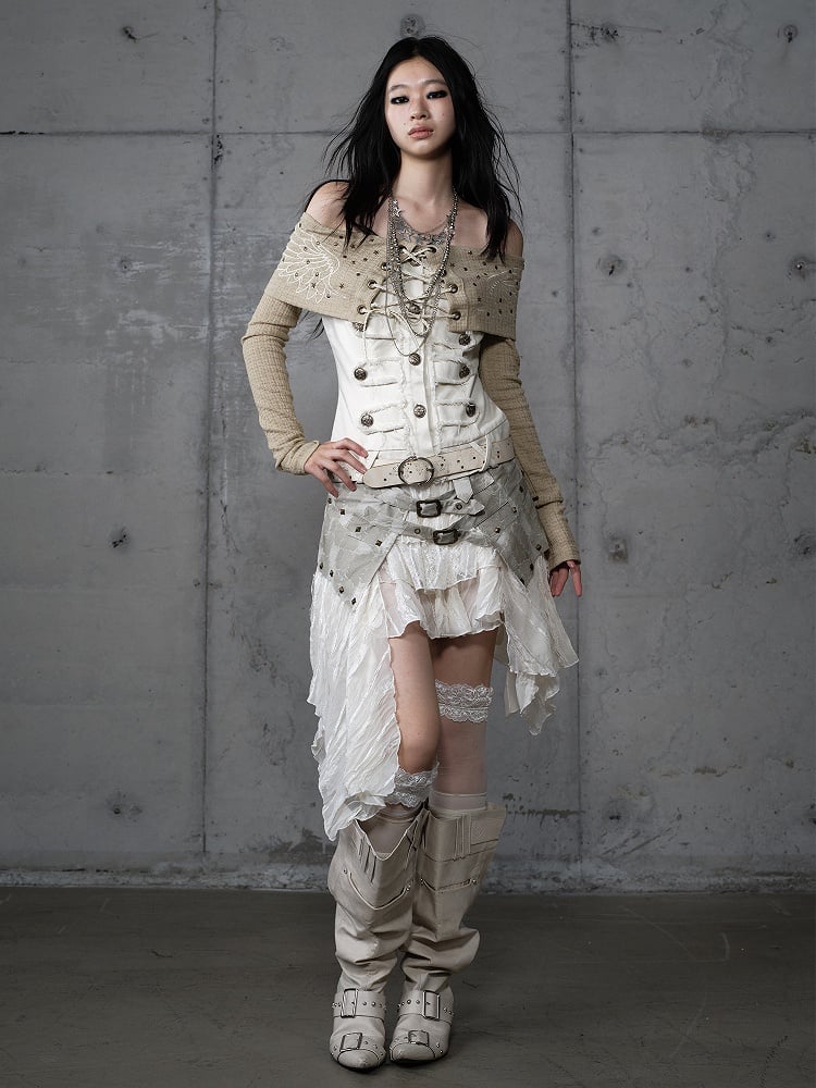 Asymmetrischer beiger Punkrock mit PU-Nietendetail