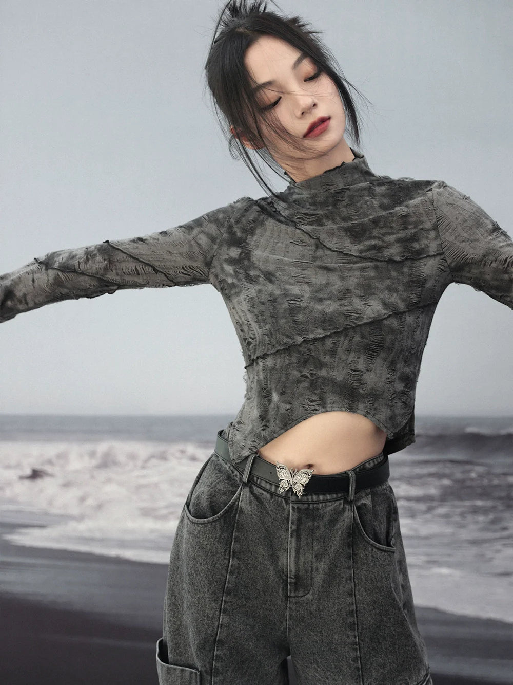 Asymmetrische Oberteile Print Retro Short