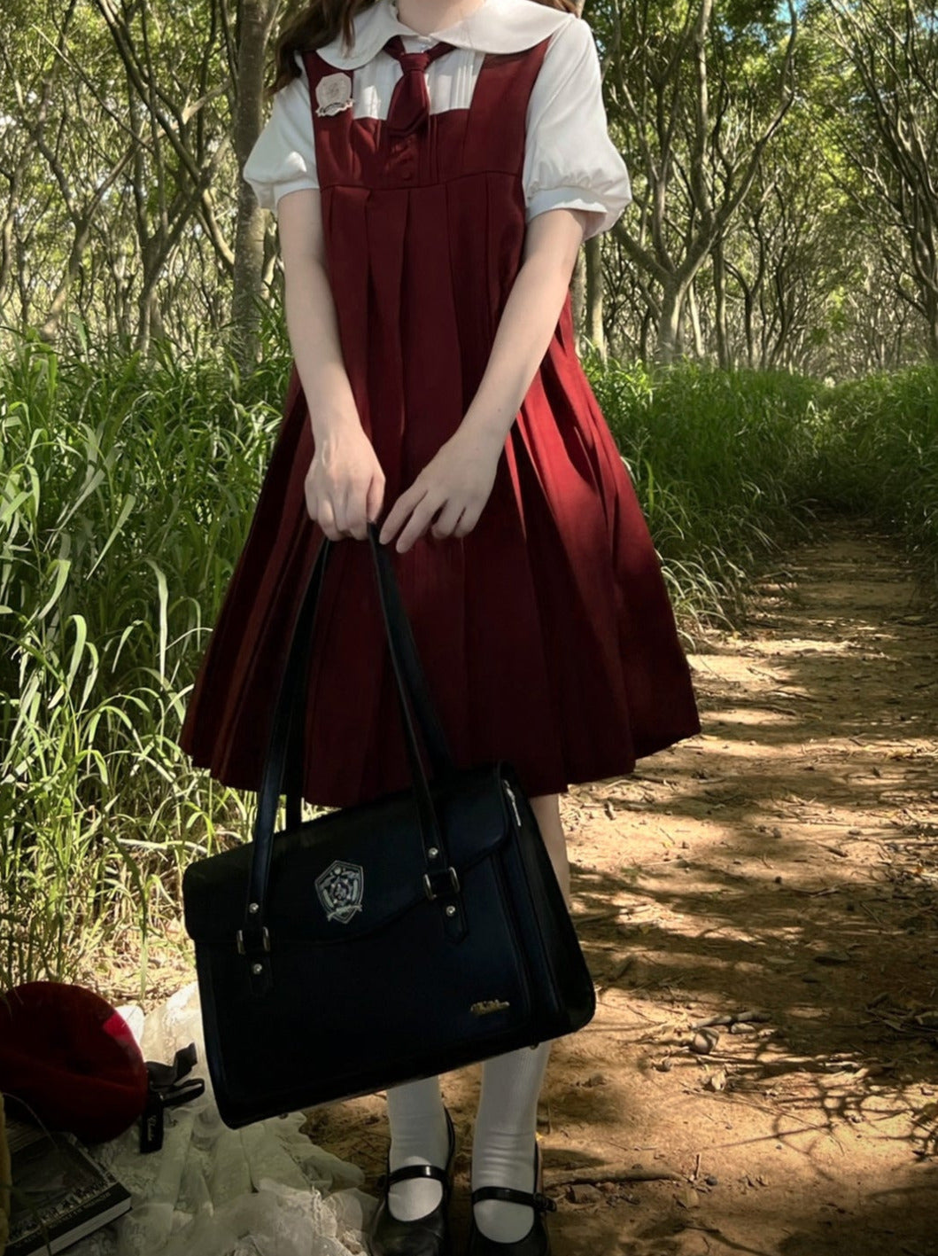 Dieses bezaubernde rote Kleid besticht durch sein einzigartiges Emblemdesign und verstellbare Hosenträger. Perfekt, um jedem Outfit einen Hauch von Niedlichkeit zu verleihen.