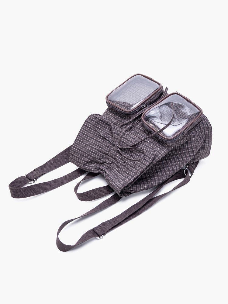 Bag With Charming Bow Drawstring Chic Brown Mini Double-Layer Ita