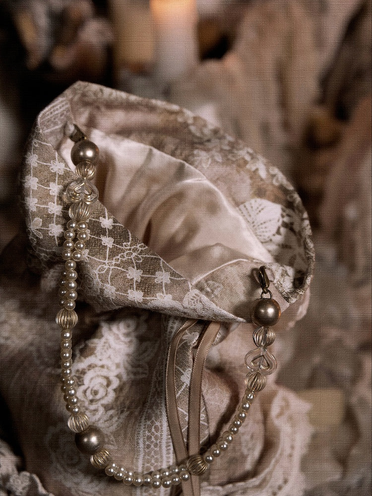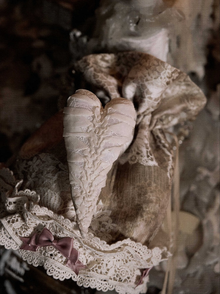Bag with Vintage Pin Hand Drawstring and Bow Lace Top Accents Heart