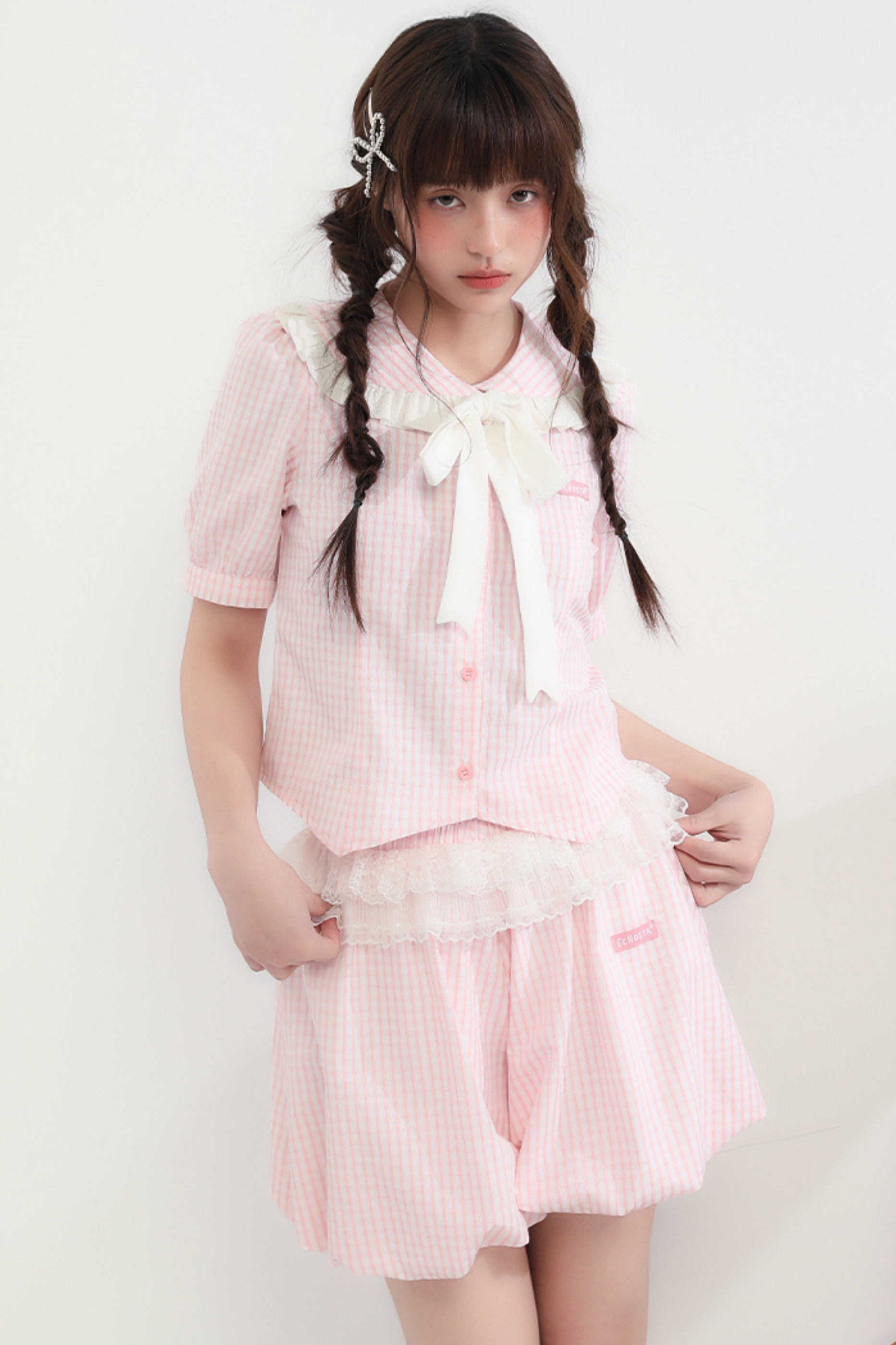 Rosa und weißes Old School Lolita Fashion Kleid Bowknot Detais Lolita JSK Set