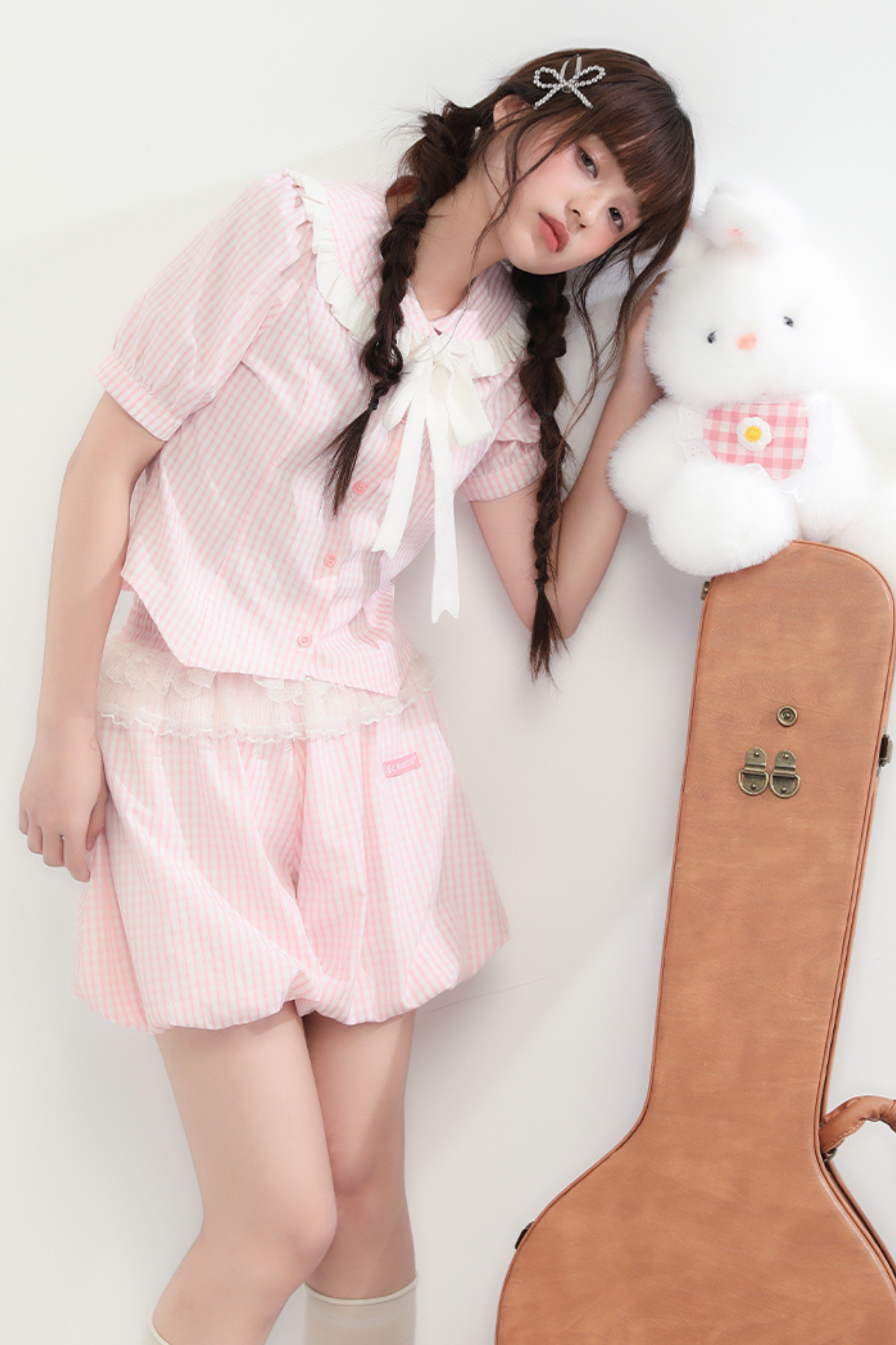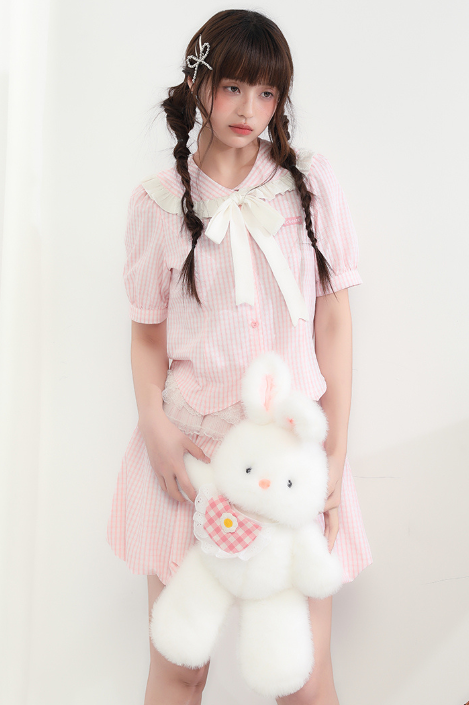 Weiß-rosa Lolita-Haube-Halsband
