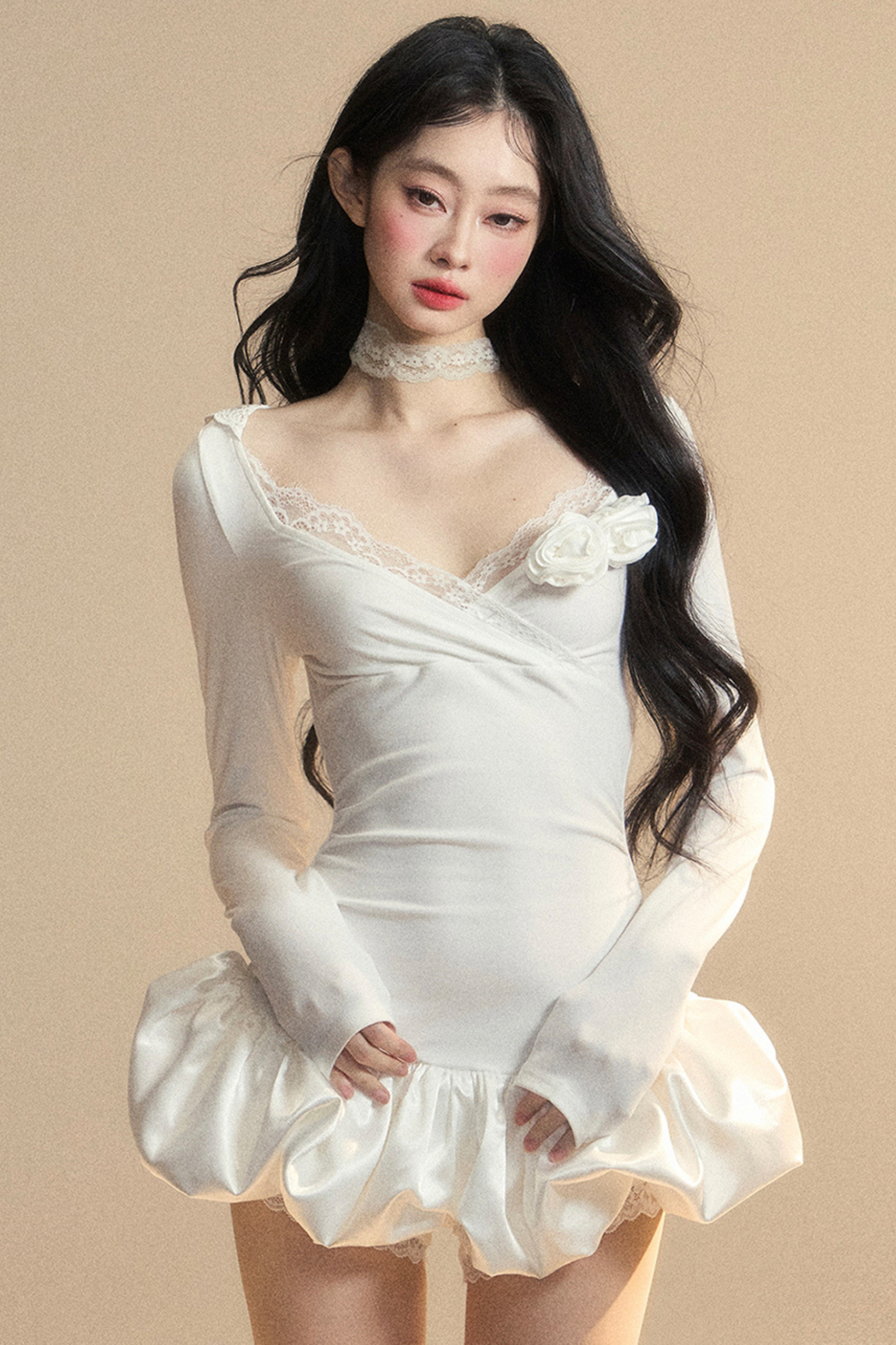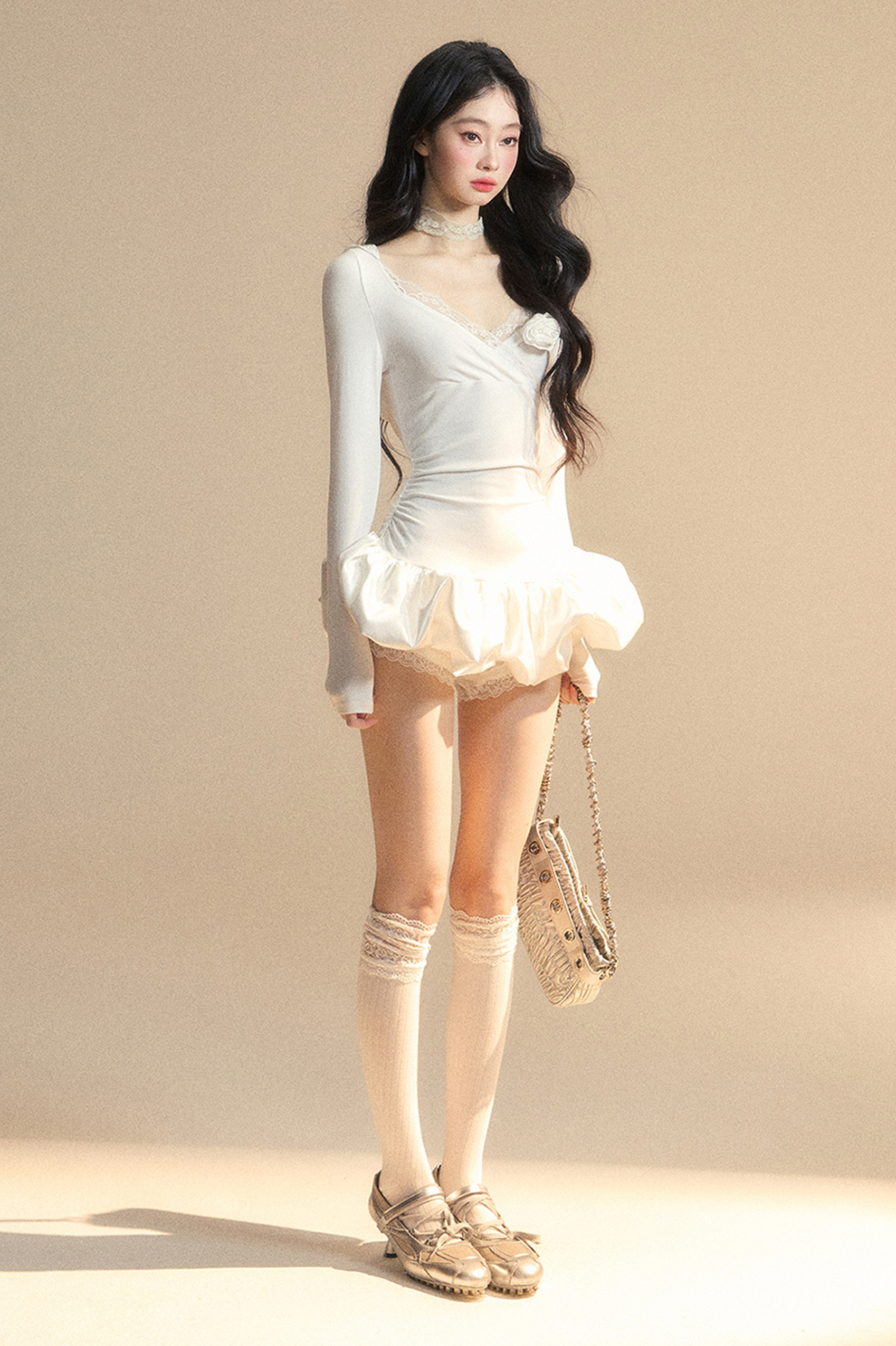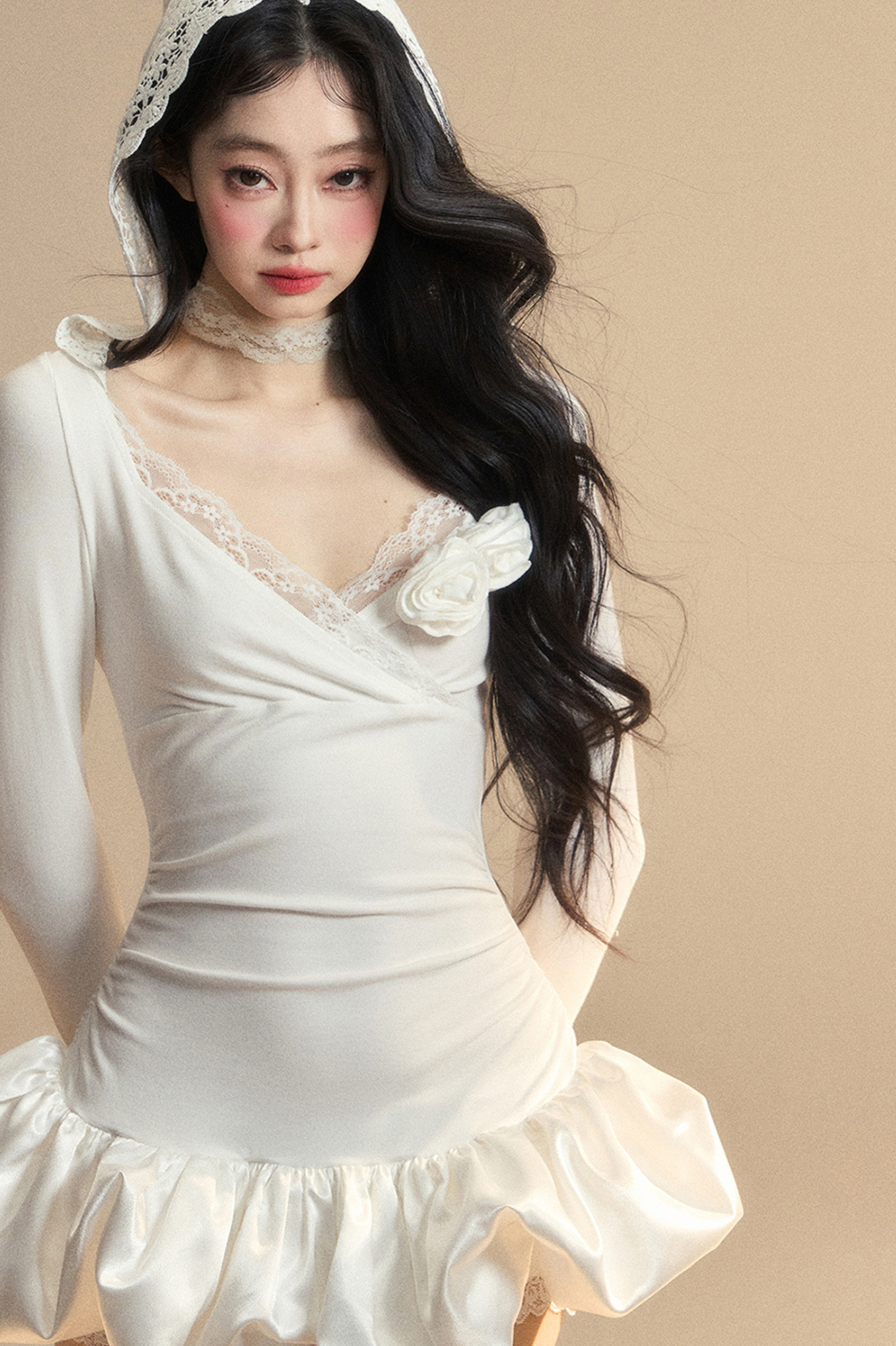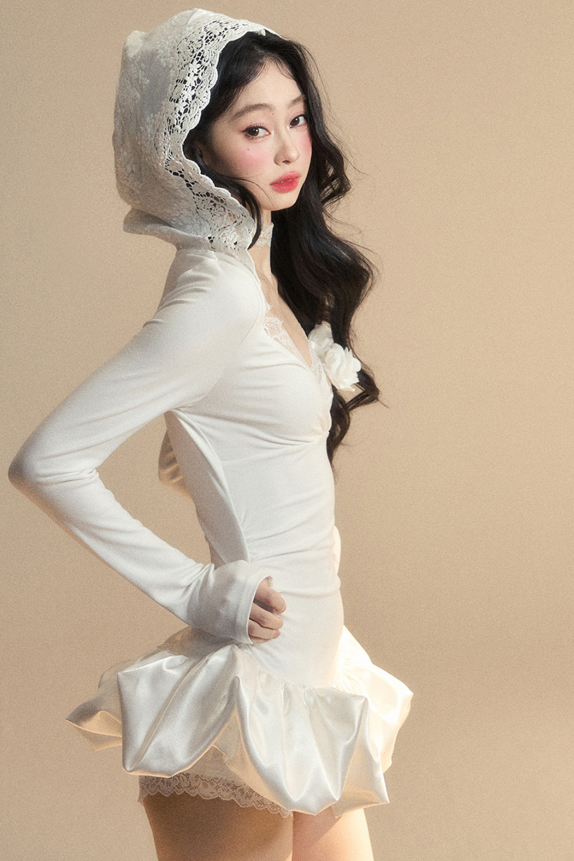 ❤Kurzes Ballettkleid mit Spitzenkapuze und Ballonärmeln❤