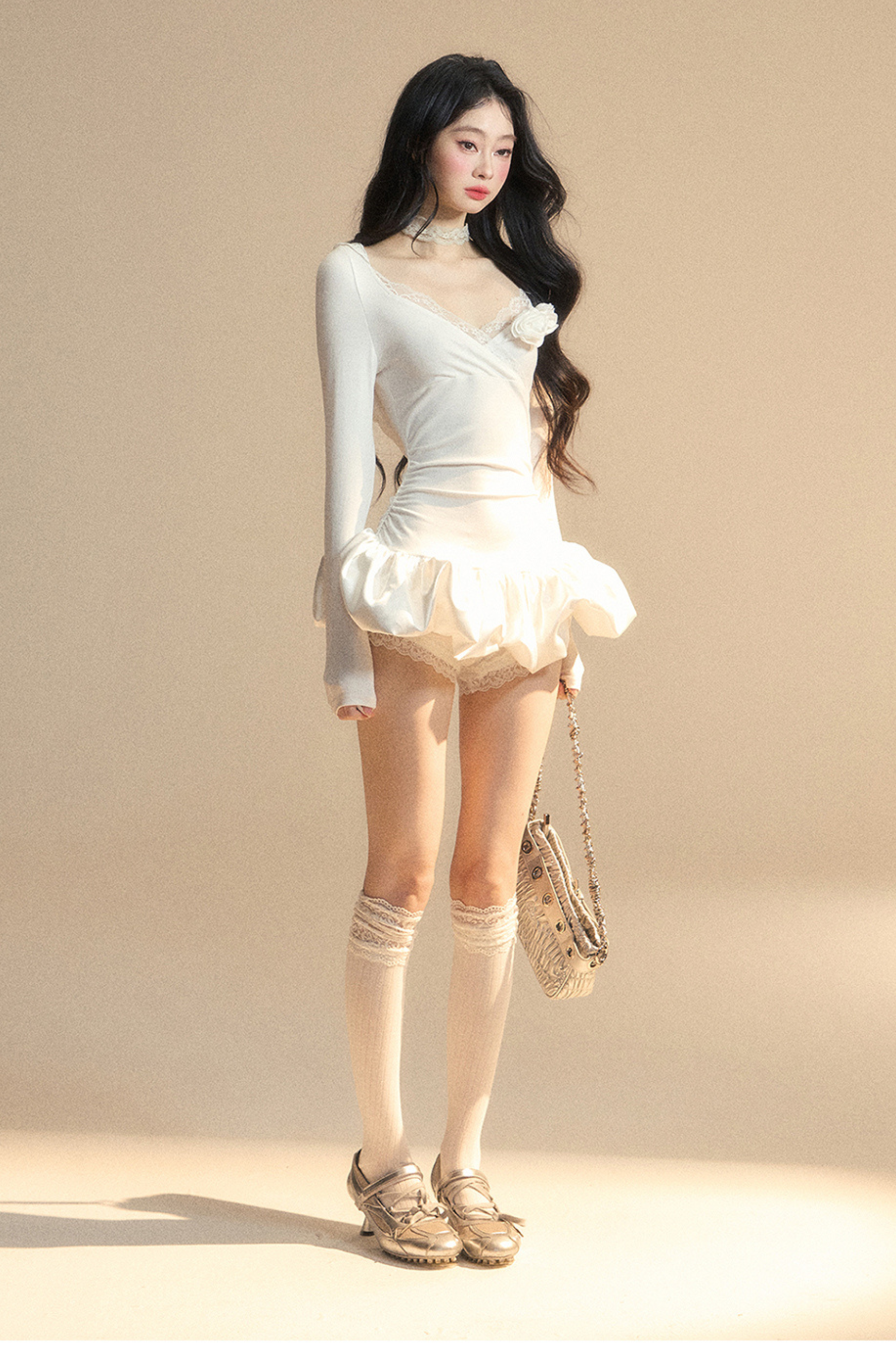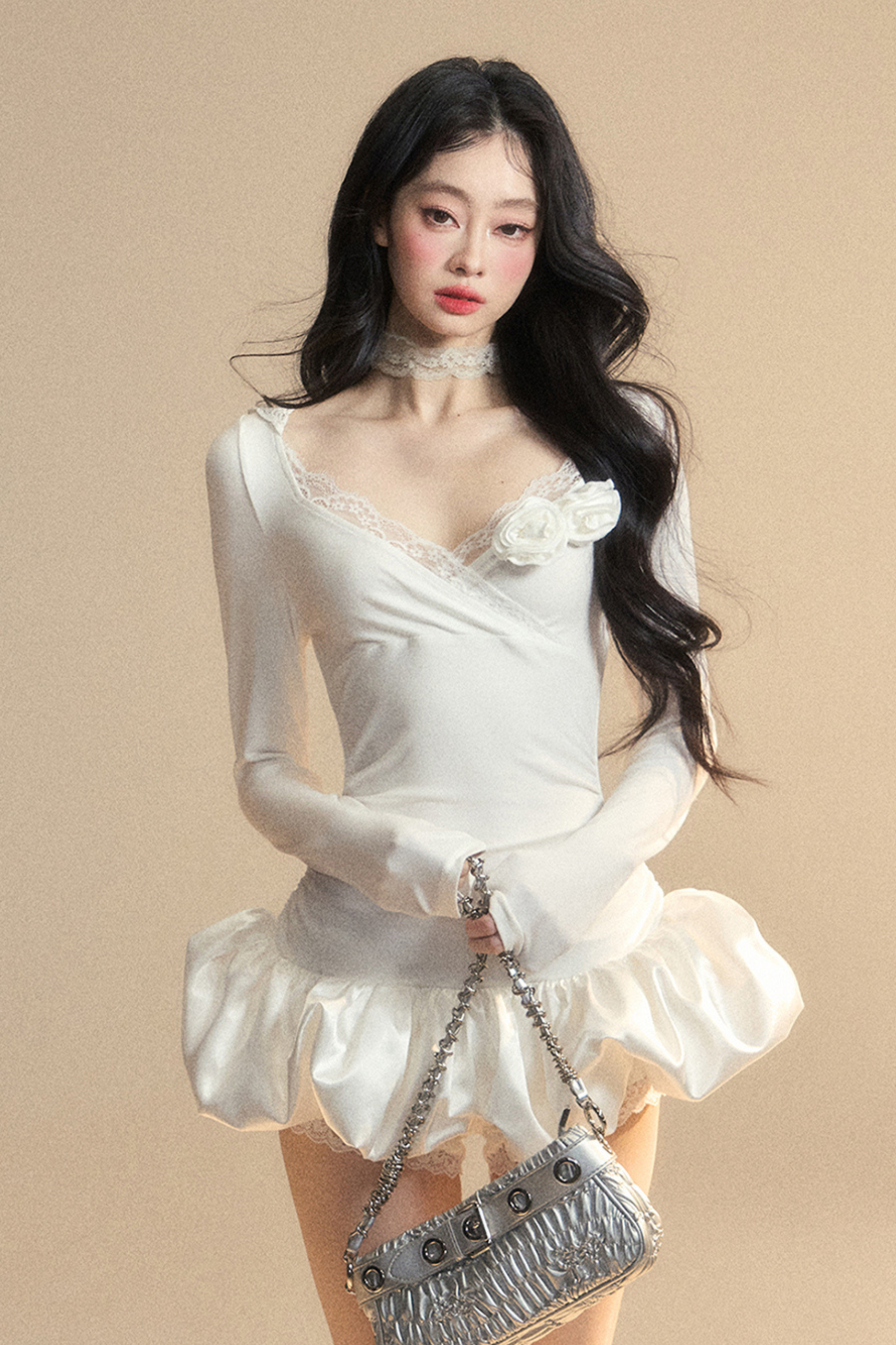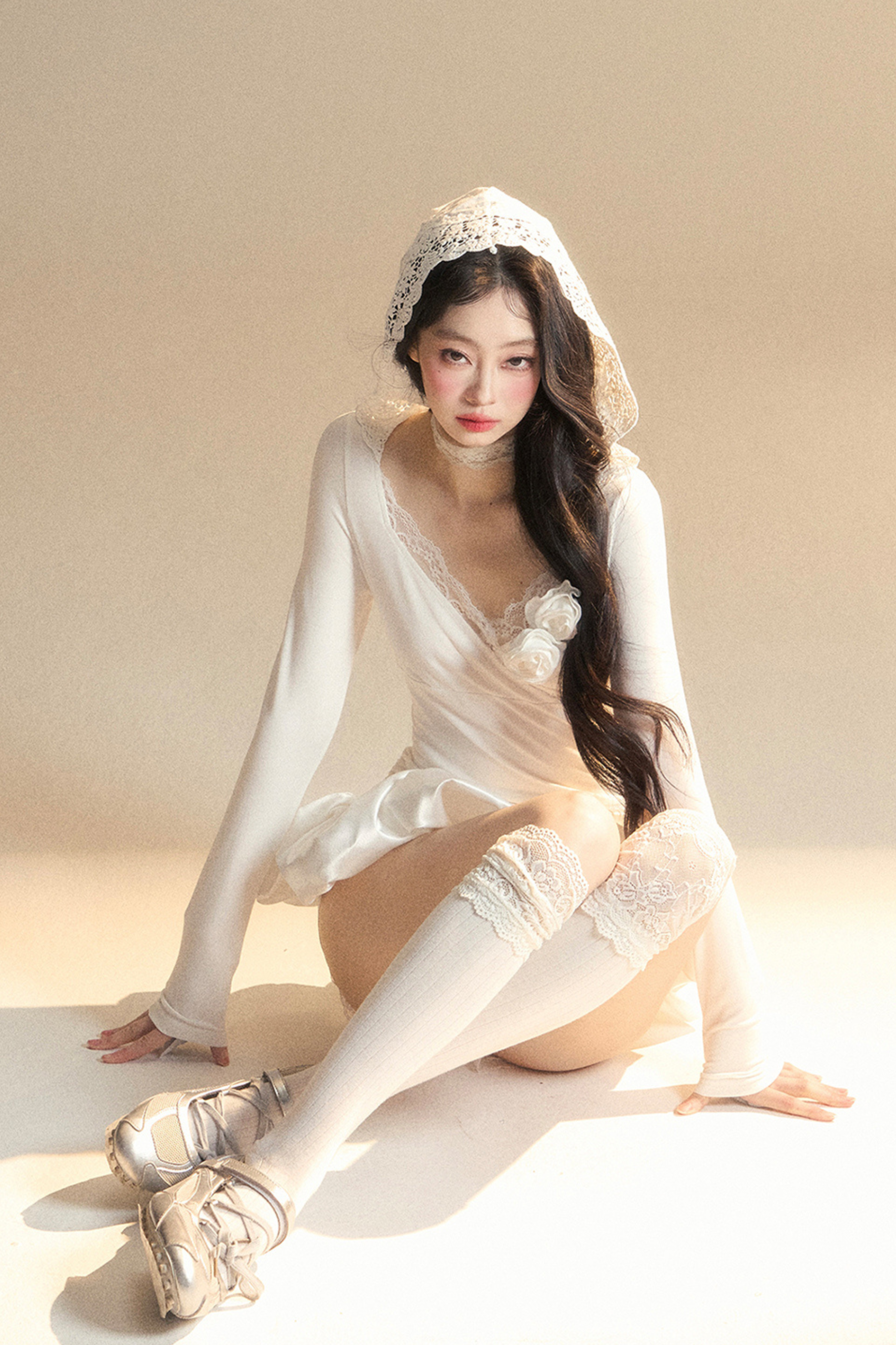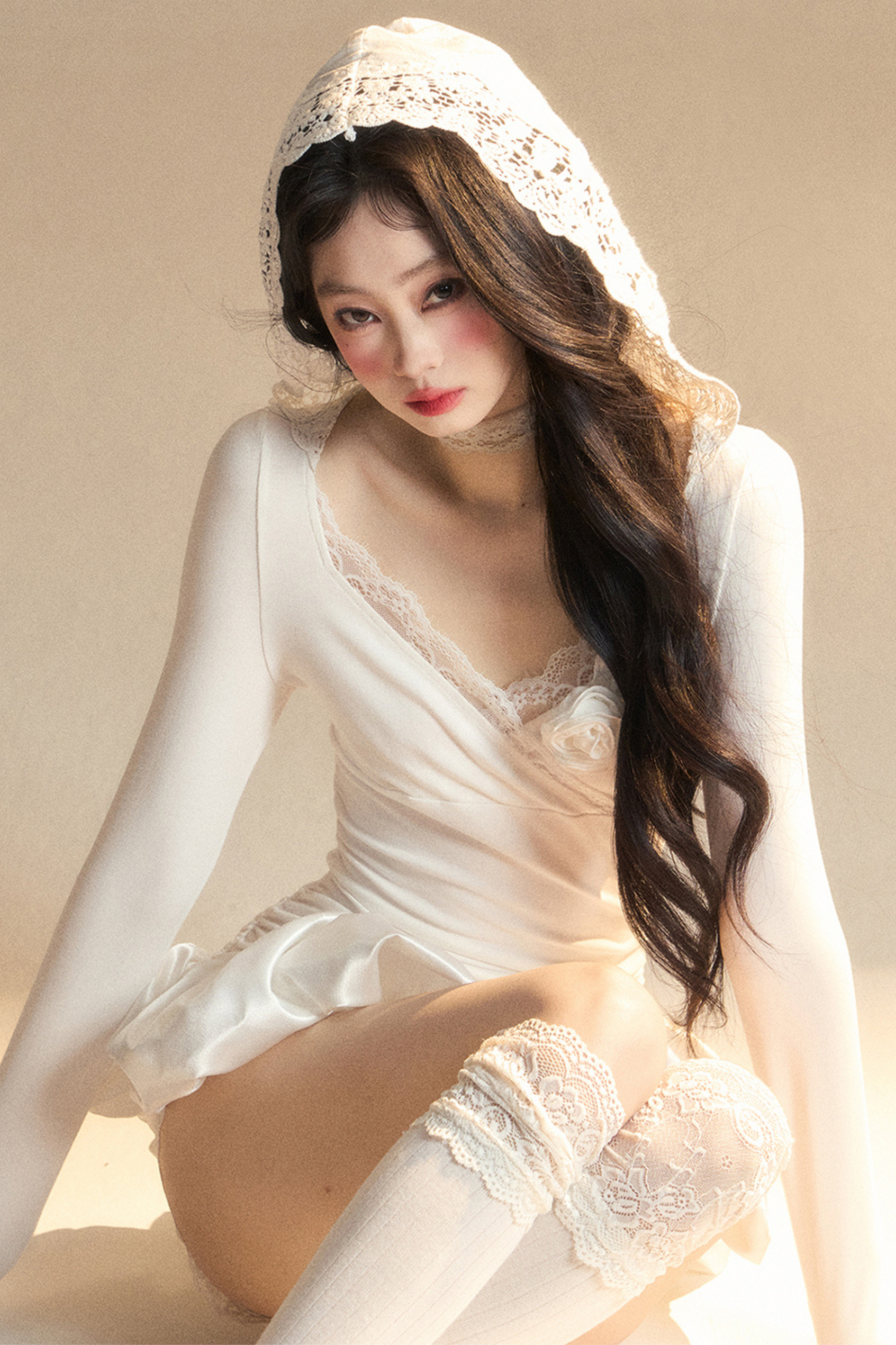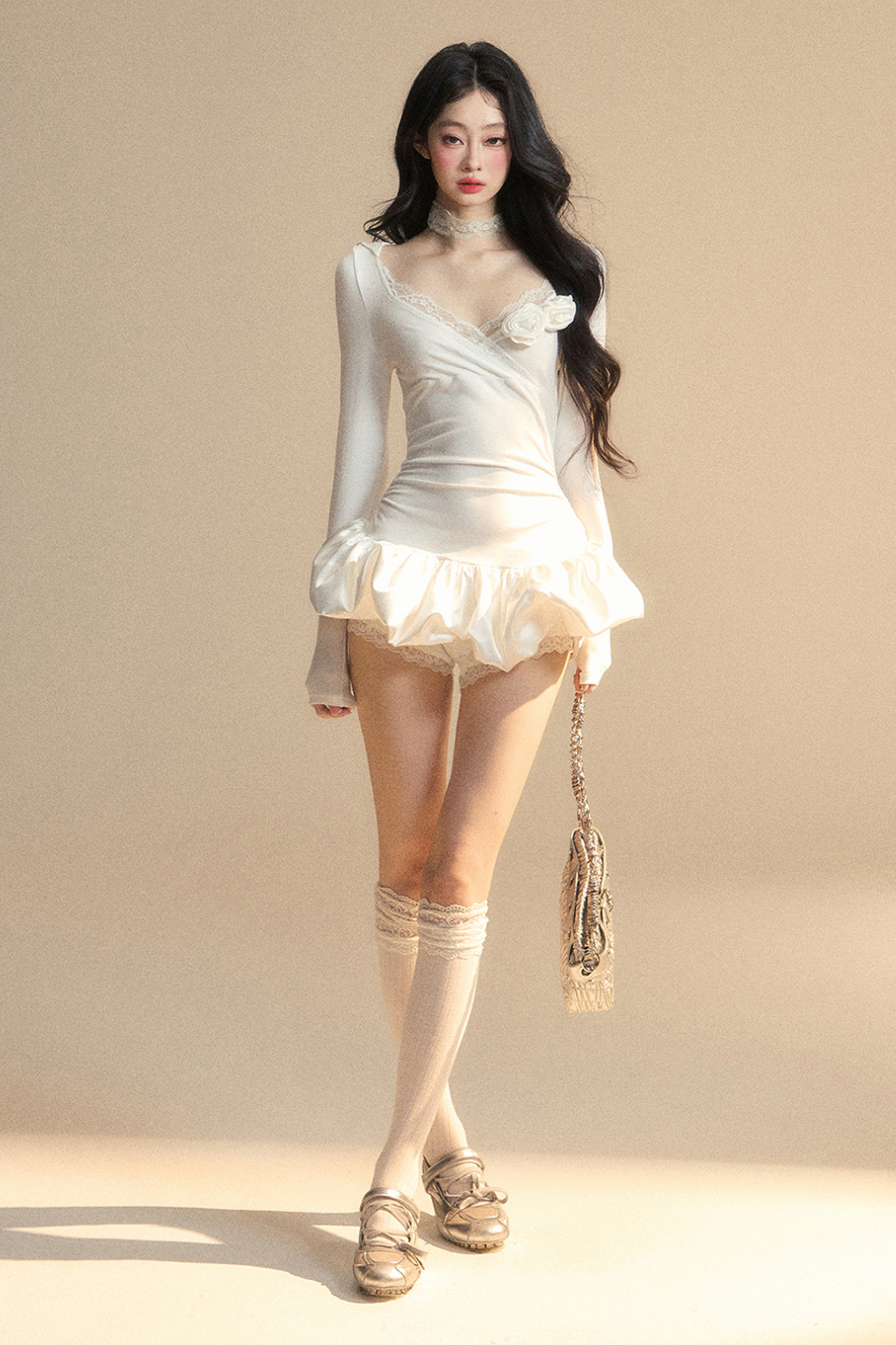 ❤Kurzes Ballettkleid mit Spitzenkapuze und Ballonärmeln❤