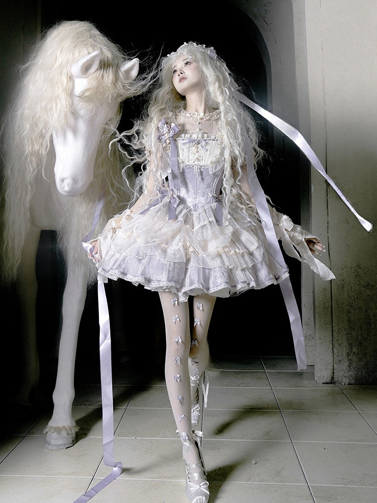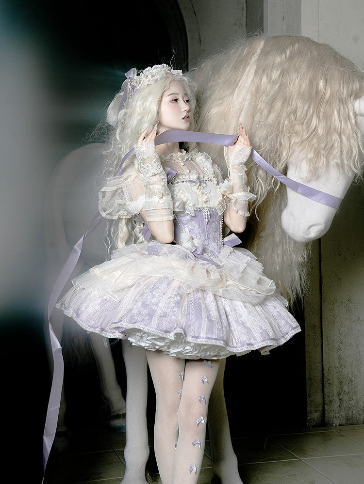 Schwarz-weißes Old School Lolita Fashion Kleid Bowknot Lolita JSK Set