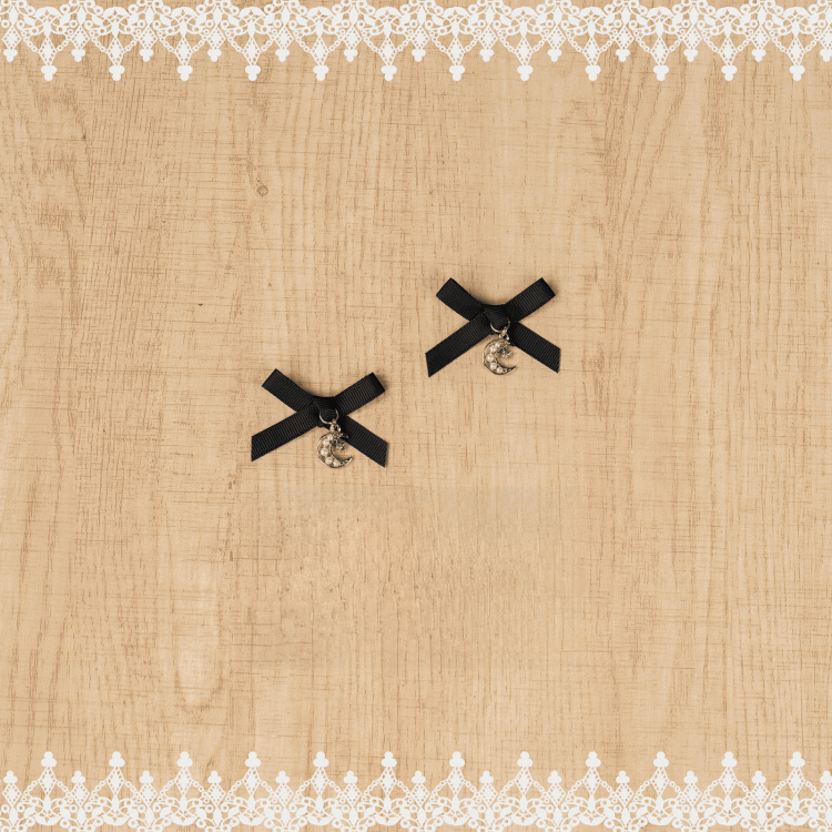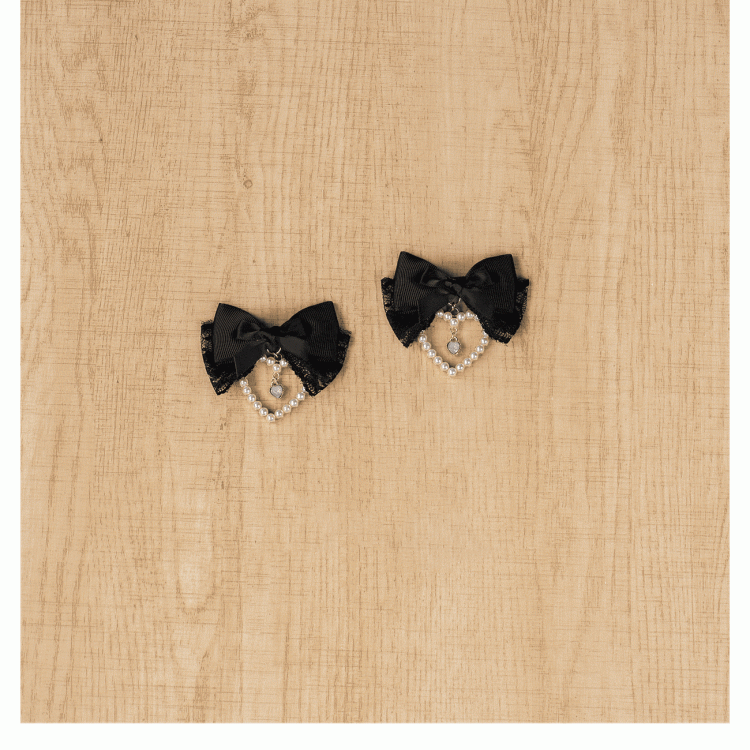 Jirai Kei – Schwarze Haarspangen mit Schleife und Mond-/Herzanhänger aus Perlen