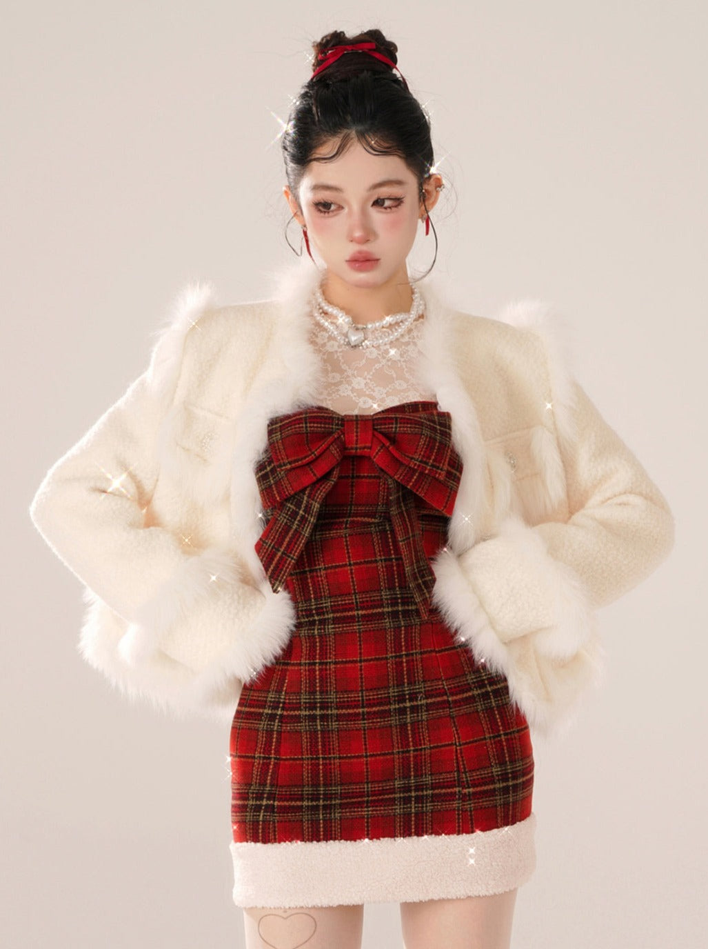 Dieses Kleid besticht durch seinen süßen roten Kragen, das Karomuster und die Spitzendetails für einen charmanten Touch. Die Strumpfhalter verleihen dem Kleid eine einzigartige Note. Perfekt für einen süßen und stylischen Look.
