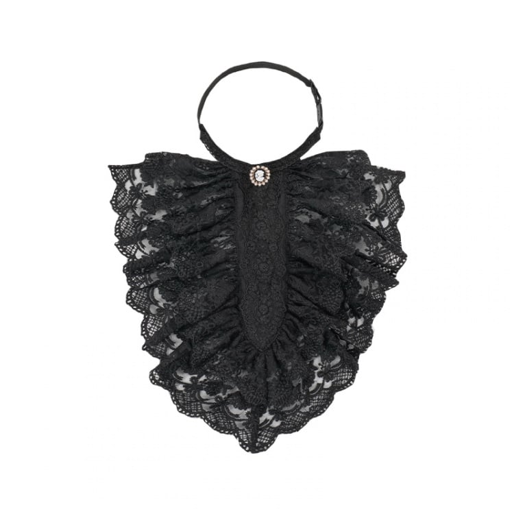 Veredeln Sie Ihr Outfit mit diesem wunderschönen beige-schwarzen Spitzenjabot. Die zarte Spitze verleiht einen Hauch von Süße, während die schwarzen Akzente für einen Hauch von Eleganz sorgen. Ein Must-have für einen süßen und charmanten Look.