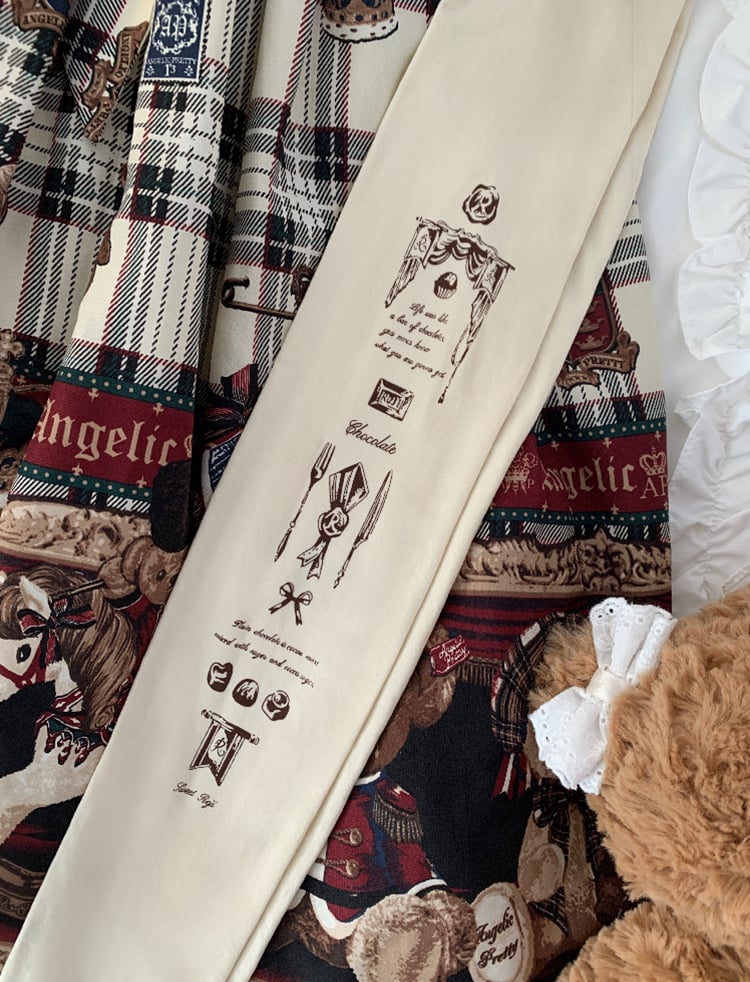 Süße Lolita-Strumpfhose mit Schokoladen-Print in Beige