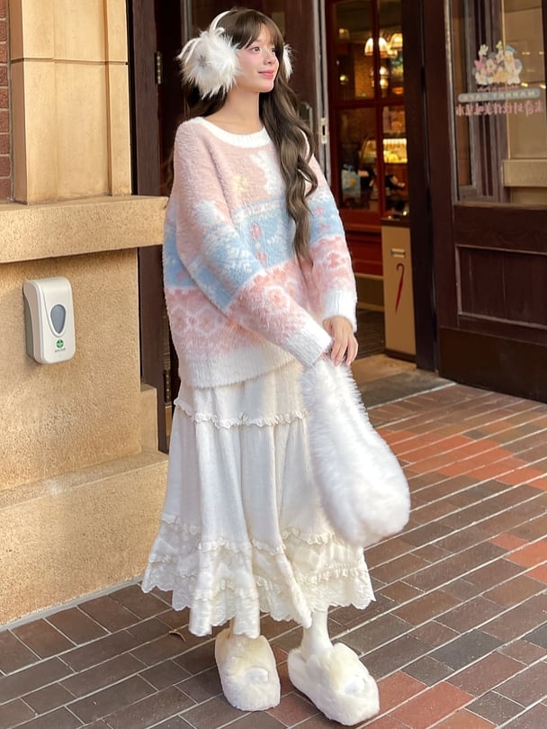 Rosa und weißes Old School Lolita Fashion Kleid Bowknot Detais Lolita JSK Set