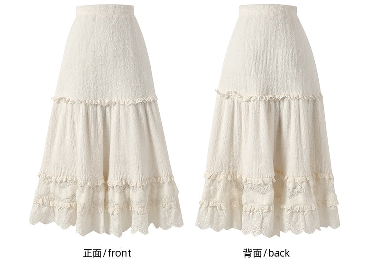 Dieser süße beige Midirock mit hoher Taille und Volantsaum mit Spitzenakzenten verleiht jedem Outfit Charme und Eleganz. Sein hohes Taillendesign schmeichelt Ihrer Figur, während die zarten Spitzenakzente und der Volantsaum eine feminine Note verleihen. Veredeln Sie Ihren Stil mit diesem schönen Midirock.