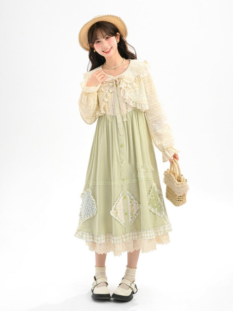Blau-weißes Old School Lolita Fashion Kleid mit Schleife und Details, JSK-Set