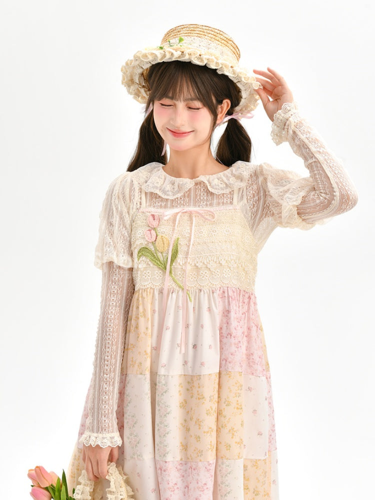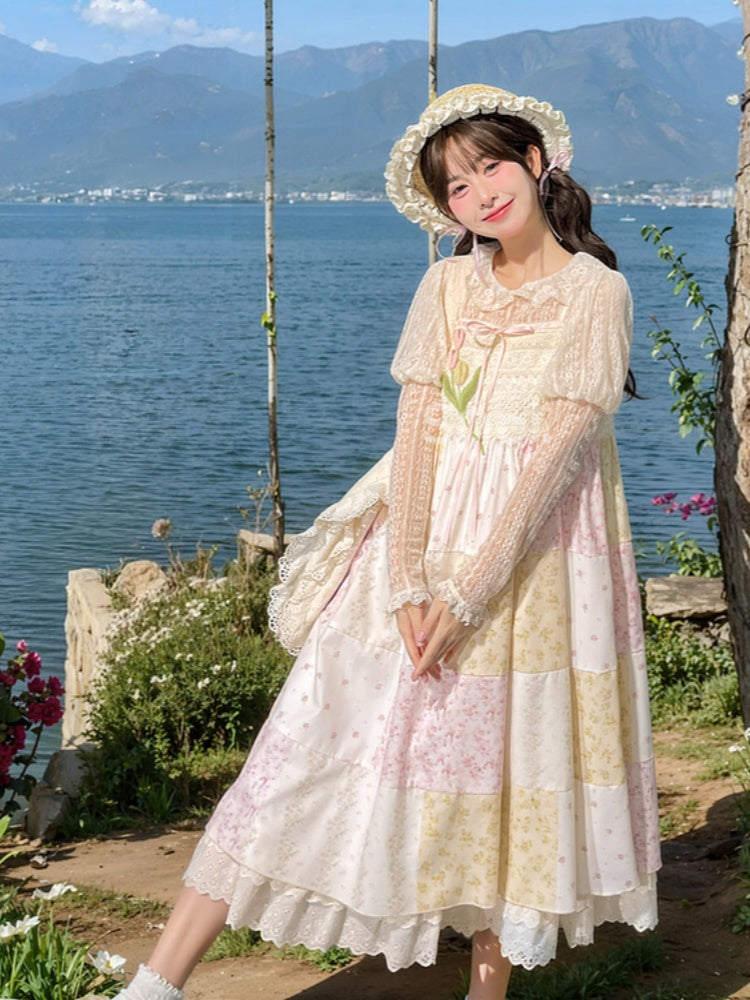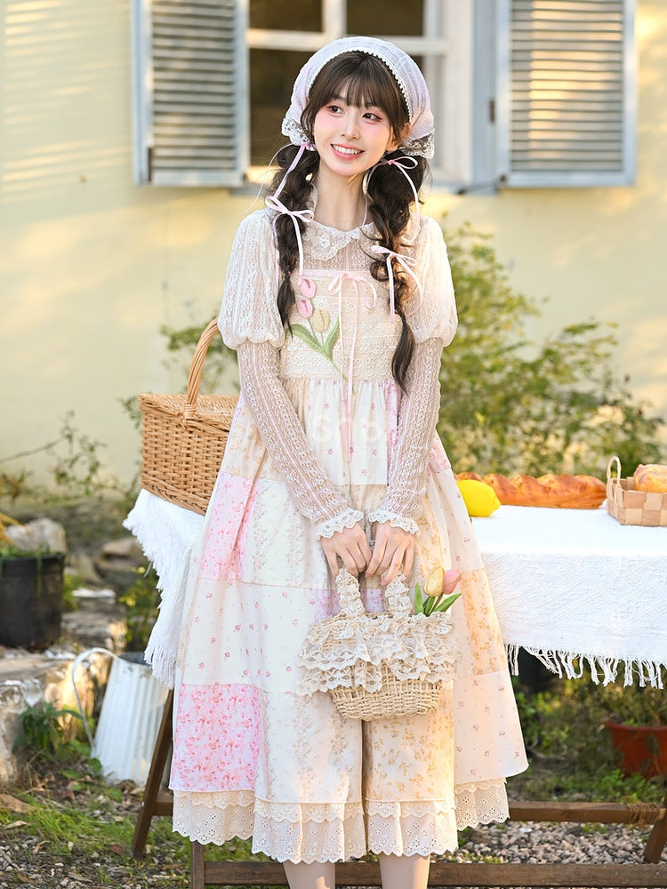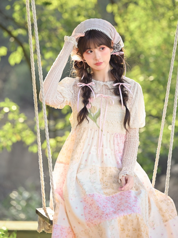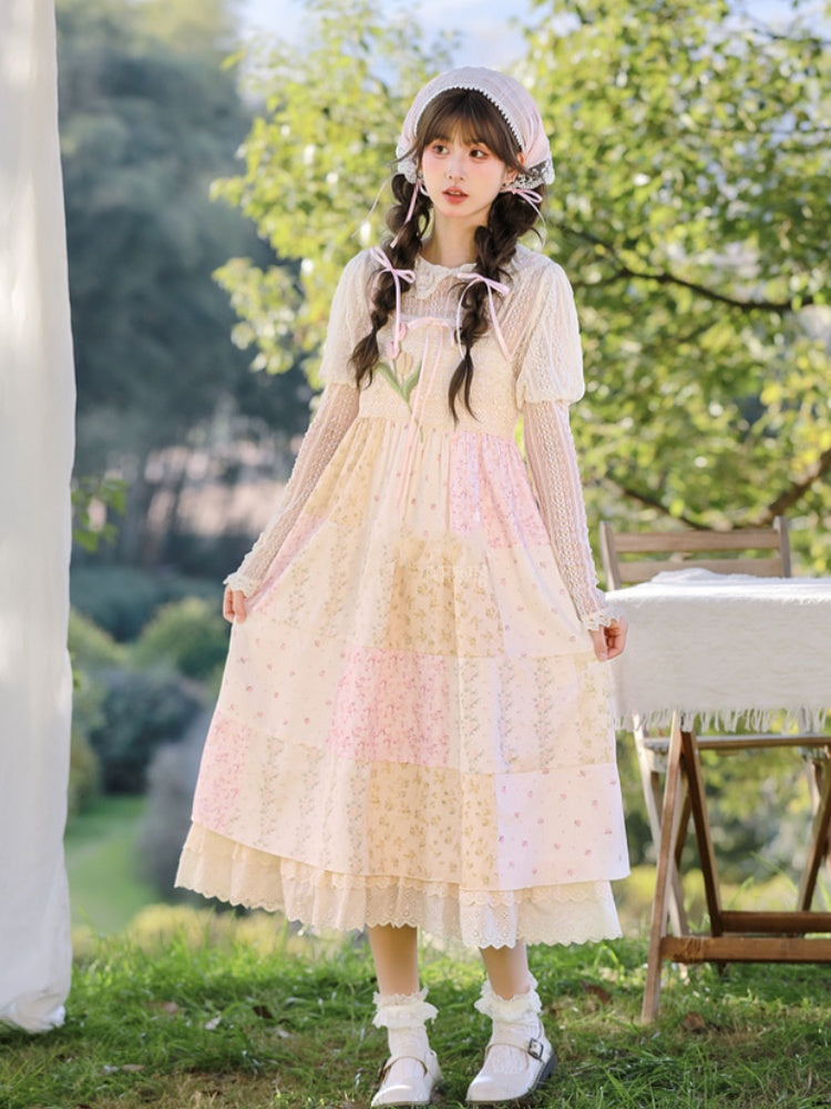 Rosa und weißes Old School Lolita Fashion Kleid Bowknot Detais Lolita JSK Set