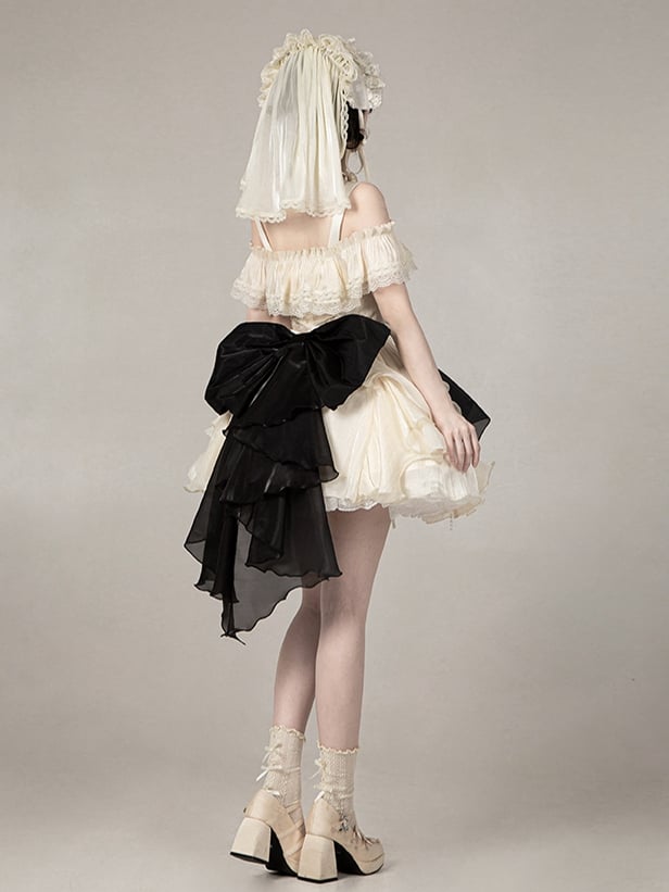 Schwarz-weißes Old School Lolita Fashion Kleid Bowknot Lolita JSK Set