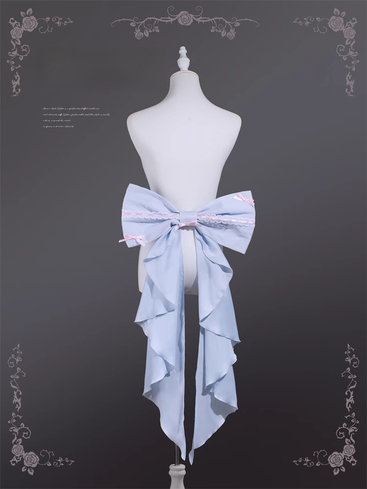 Blau-weißes Old School Lolita Fashion Kleid mit Schleife und Details, JSK-Set