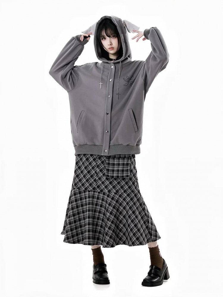 Bittersüße Kette Grau/Schwarz Kapuzendesign Hoodie Flügel Kreuz Wing Stickerei Rücken Feder