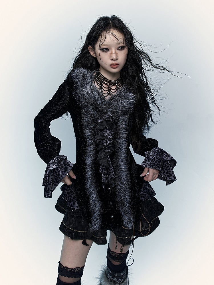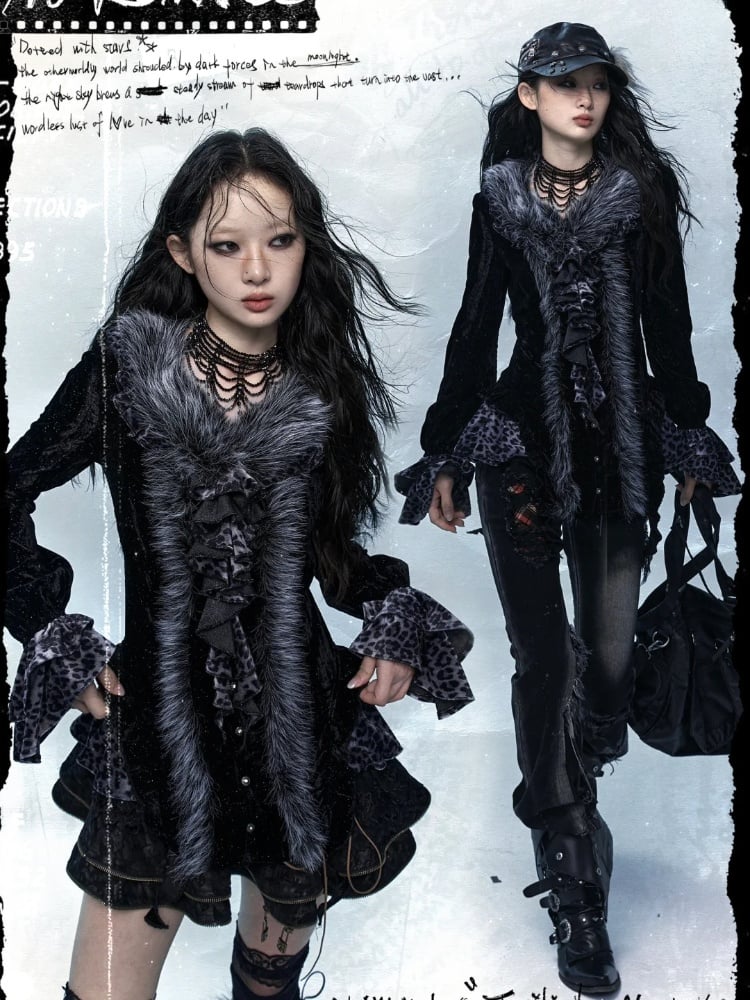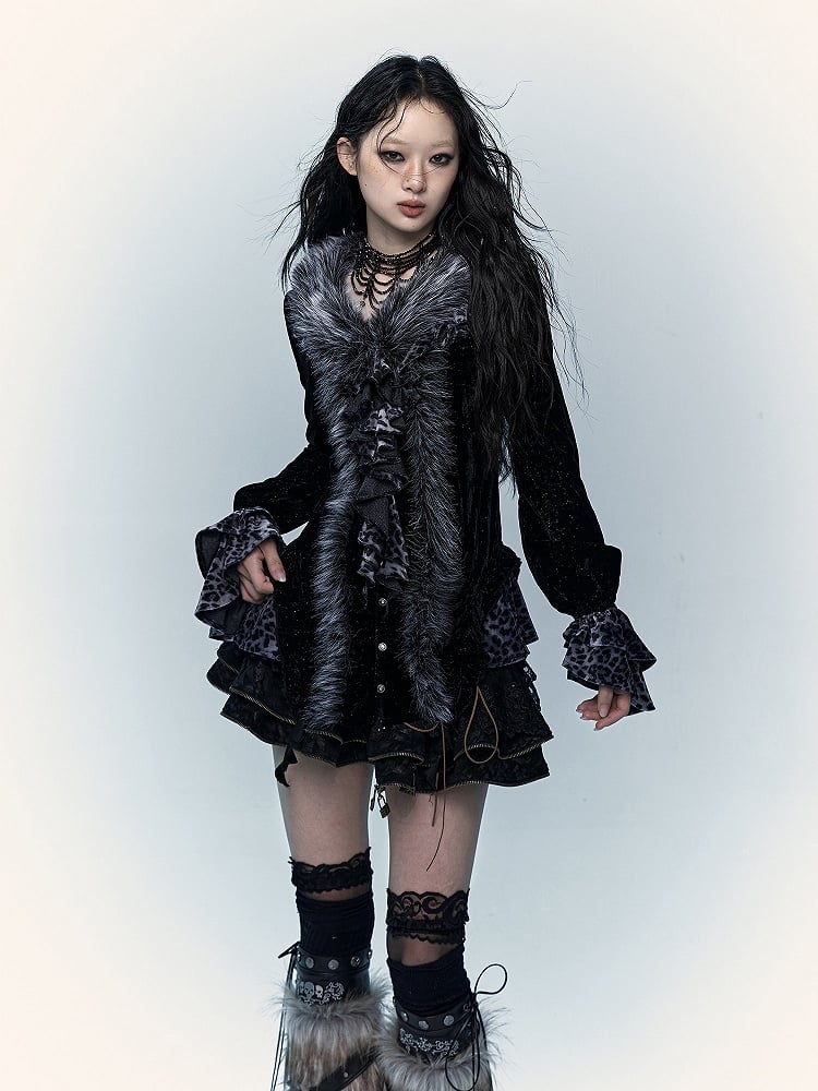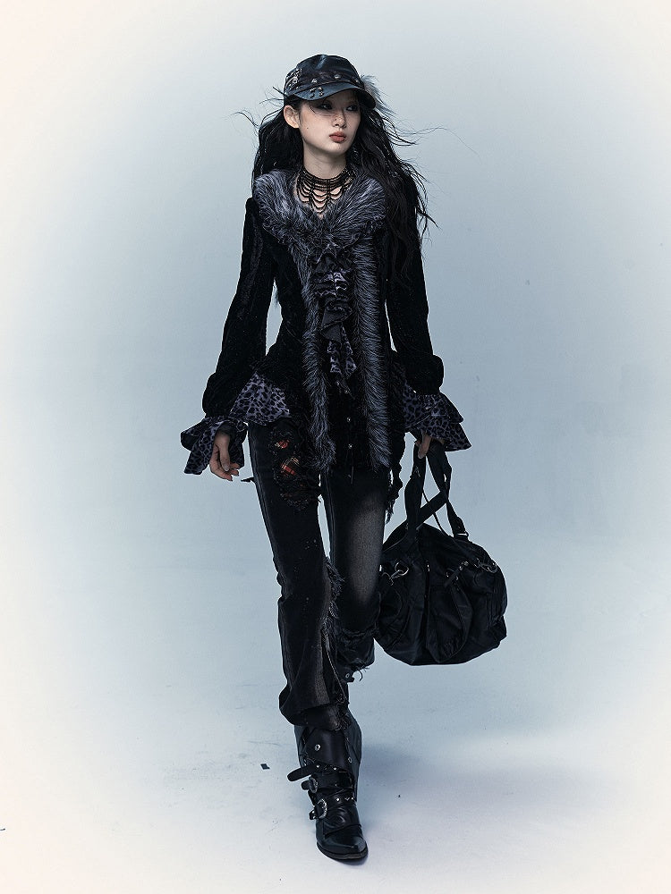 Dieses bezaubernde Oberteil besticht durch ein stilvolles Leopardenmuster in Schwarz und Grau mit zotteligen Bündchen. Perfekt, um jedem Outfit einen Hauch von Niedlichkeit zu verleihen!
