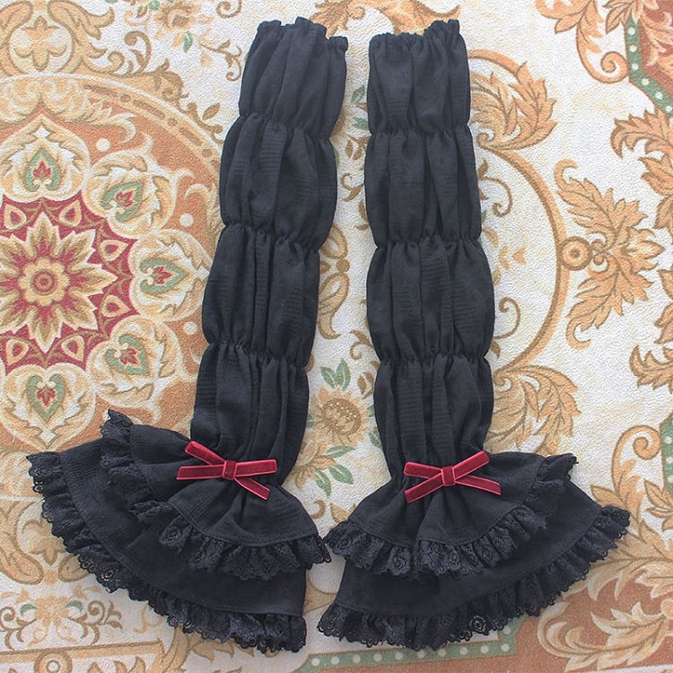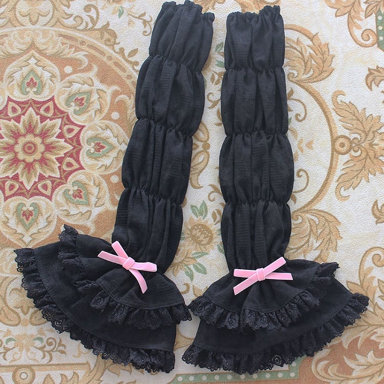Schwarze Lagenärmel mit Spitzenbesatz und Schleifenakzenten. Erhältlich in 2 Farben.
