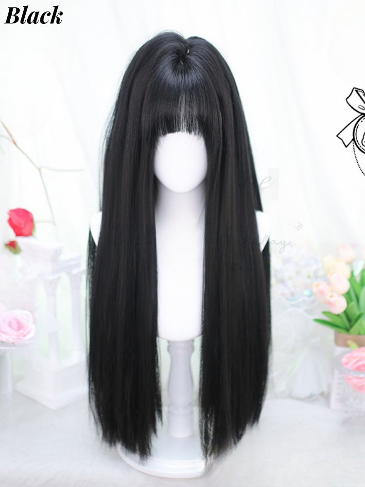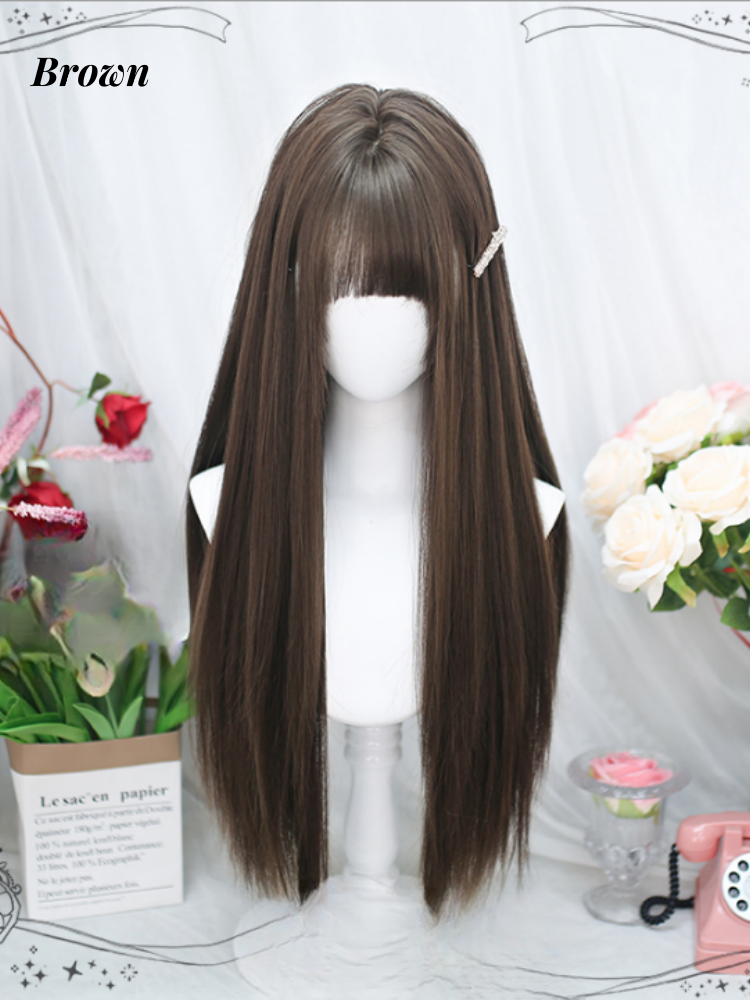 Schwarze/schwarze Tee/braune, glatte Unterbrustperücke mit Pony