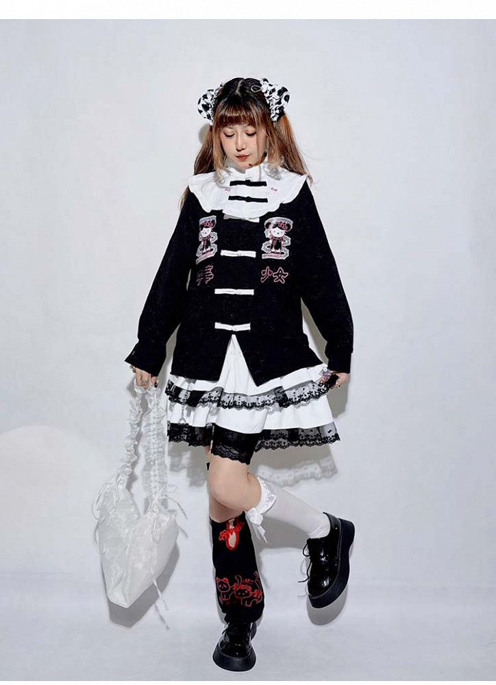 Zeigen Sie Ihre süße Seite mit unserem schwarz-blauen Jirai Kei-Top mit langen Ärmeln und Kätzchen-Bund. Das bezaubernde Kätzchen-Design und die bequemen langen Ärmel machen es perfekt für jeden lässigen Anlass. Bleiben Sie stilvoll und charmant in diesem Top!