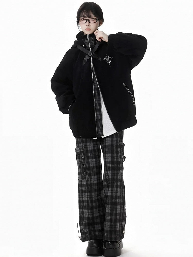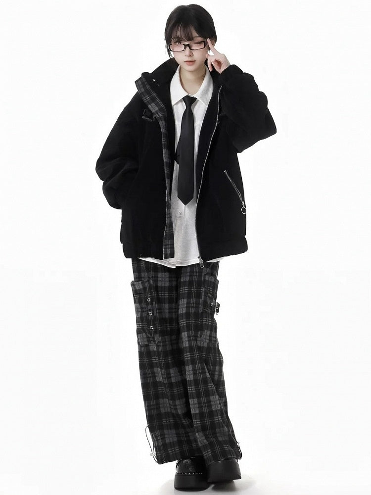 Der perfekte Übergang vom Winter zum Frühling! Diese klassische schwarz-grau karierte Hose ist ein vielseitiges Basic und lässt sich mühelos mit jedem Outfit kombinieren. Mit praktischen großen Taschen auf beiden Seiten ist sie ideal für unterwegs. Vereinen Sie Stil und Funktionalität mit diesem Must-have!
