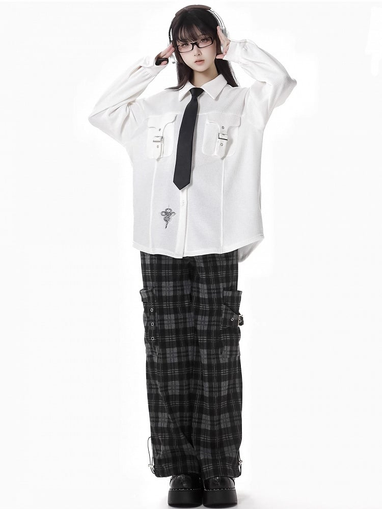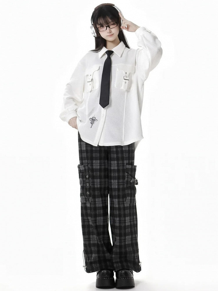 Diese schwarze Cargohose mit Karomuster und Taschen vereint Funktionalität und Stil. Das robuste Material und die vielen Taschen sorgen für Komfort und Langlebigkeit, während das Karomuster Ihrem Outfit einen süßen Touch verleiht. Perfekt für jeden Anlass!