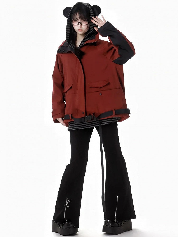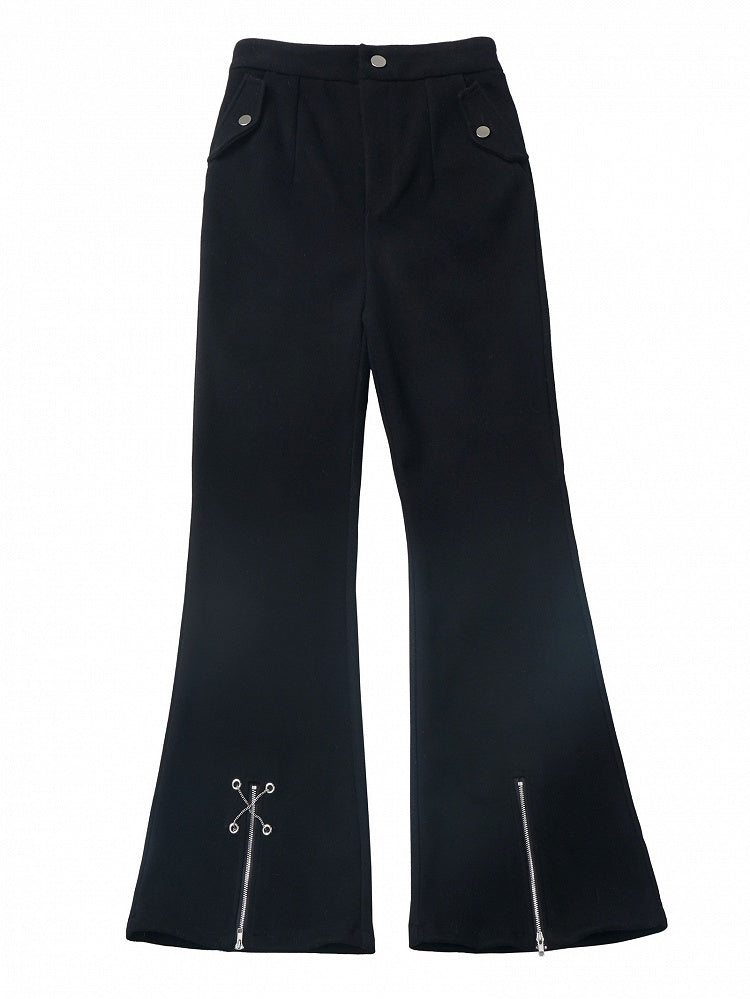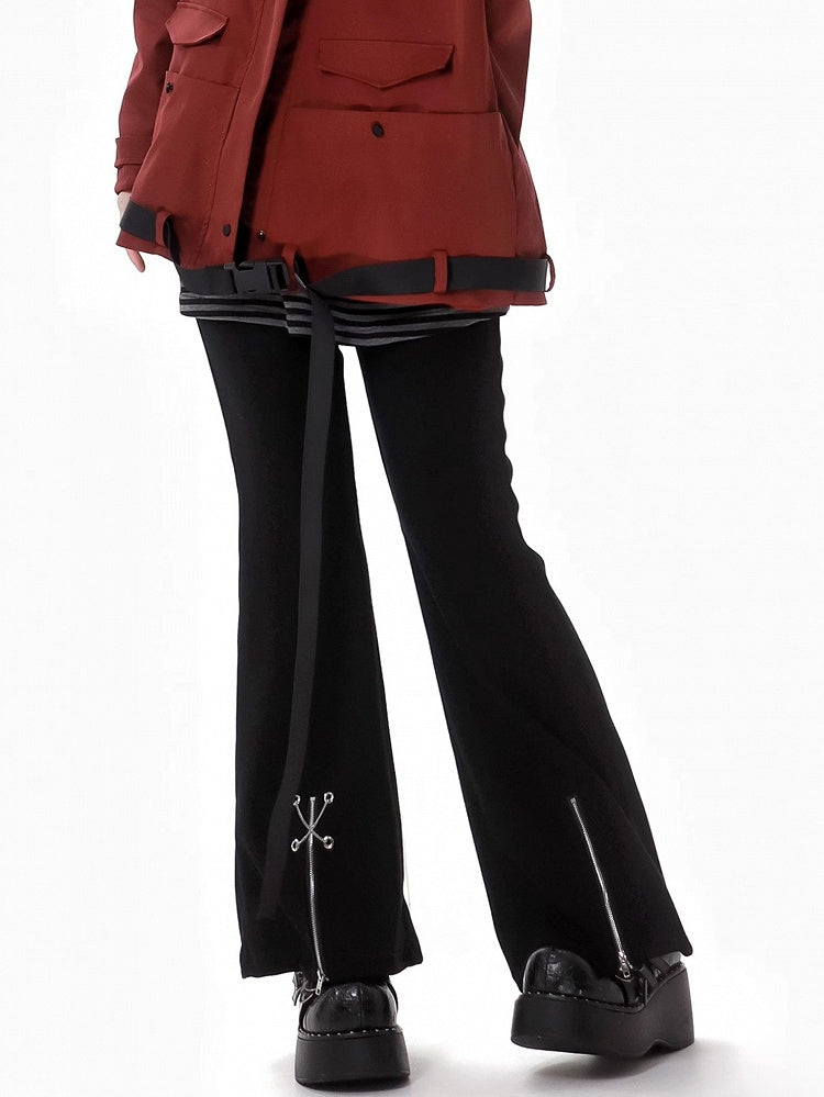 Schwarze Fischschwanzhose mit überkreuzten Ketten-Reißverschlüssen an den Bündchen