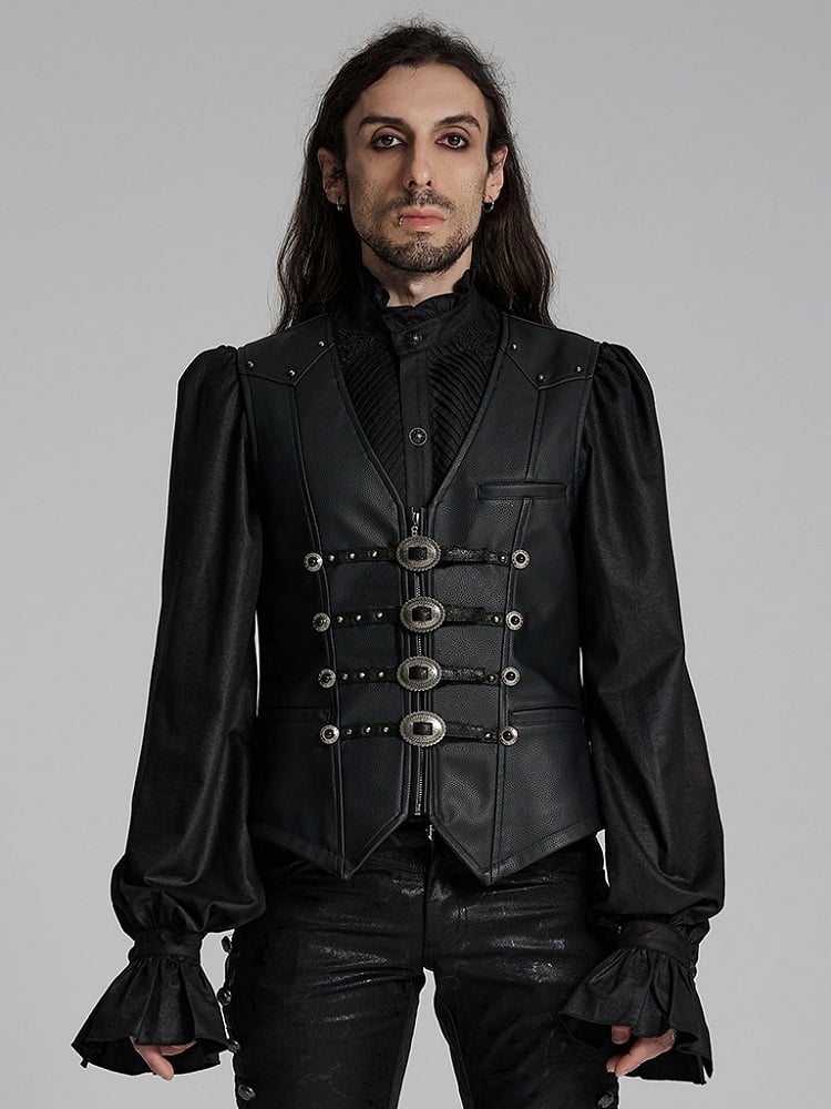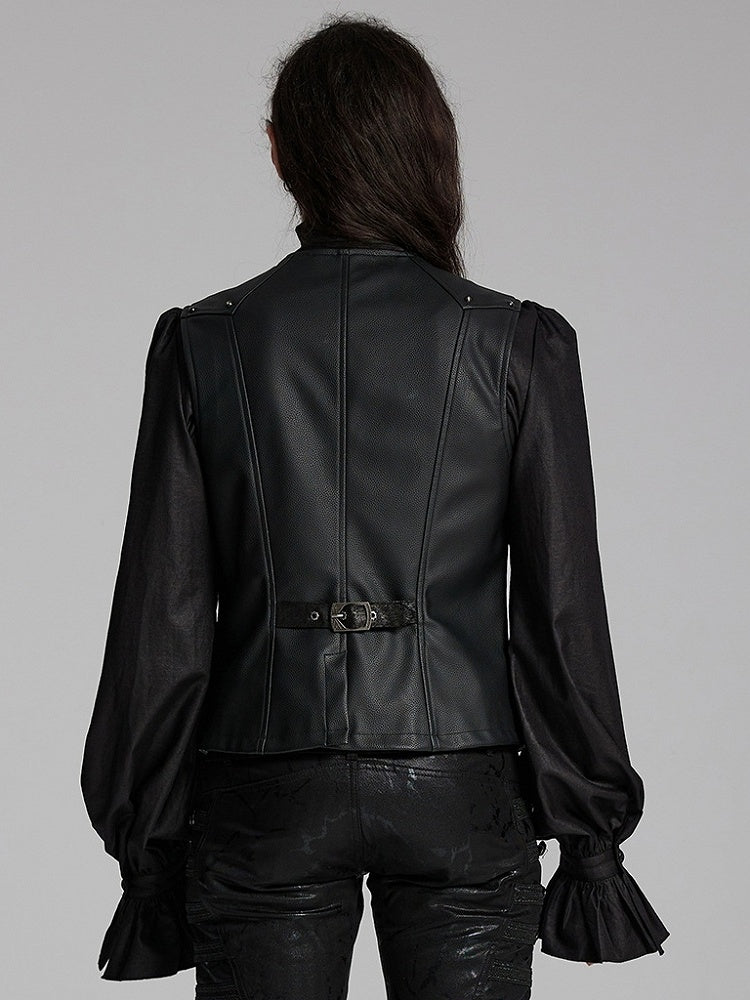Zip Closure Design Jacket Asymmetrical Black Punk -