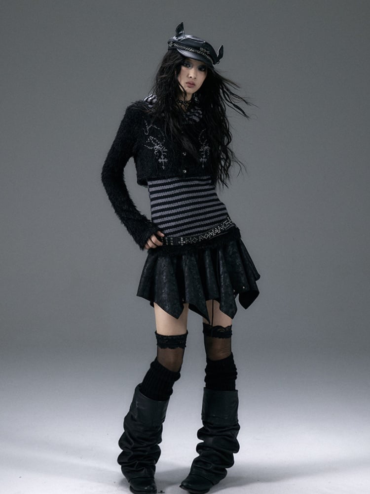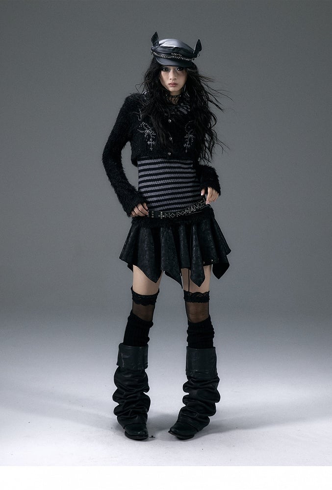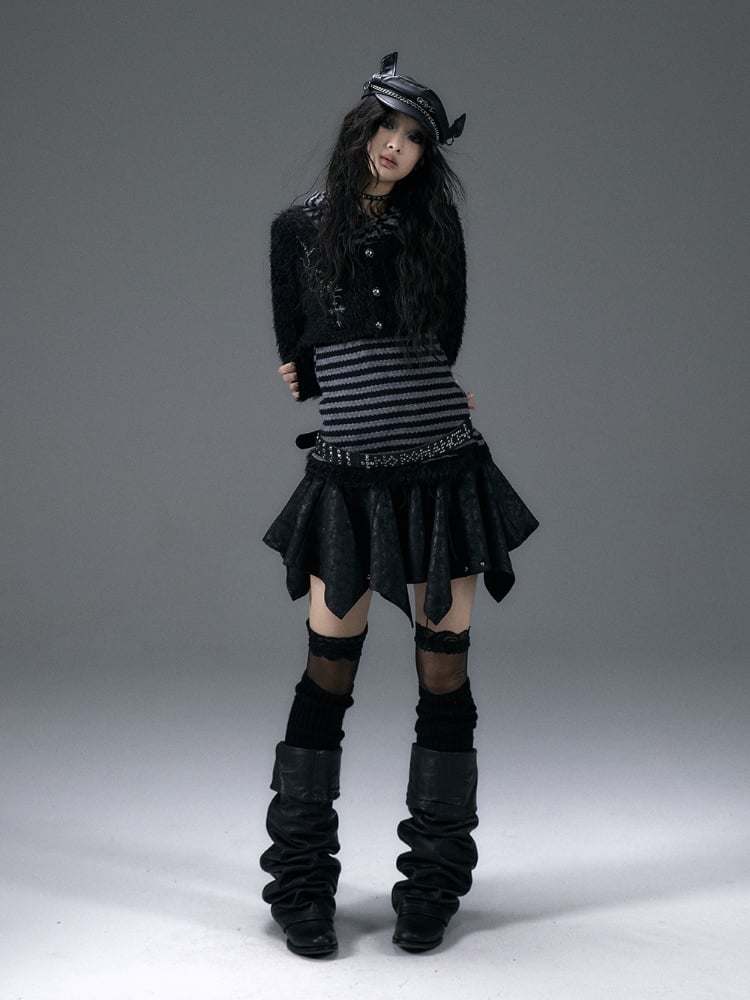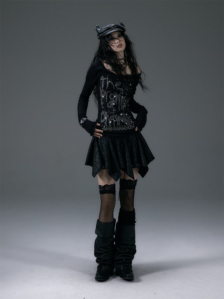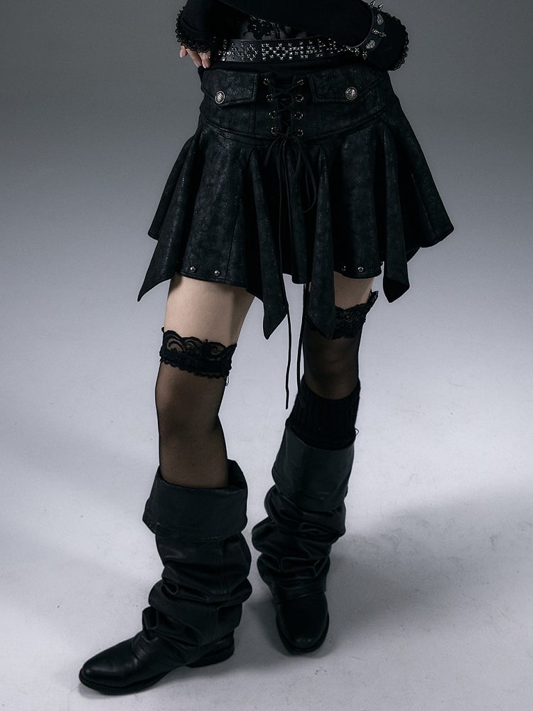 Schwarzer Rock mit Taschentuchsaum und Schnürung